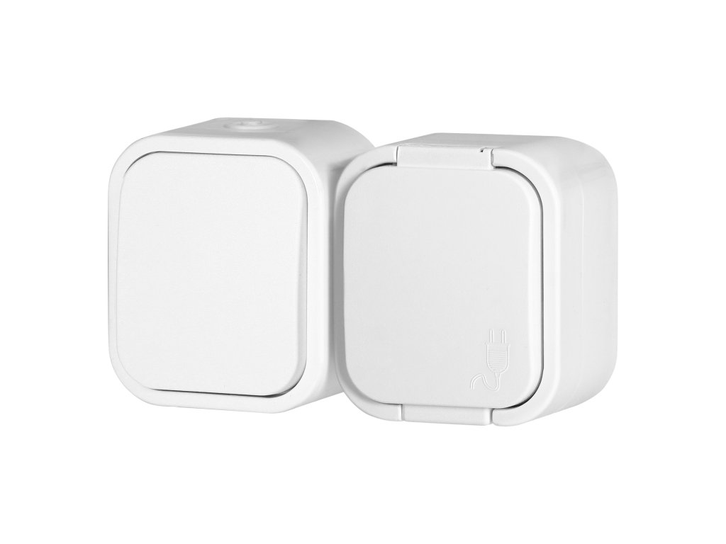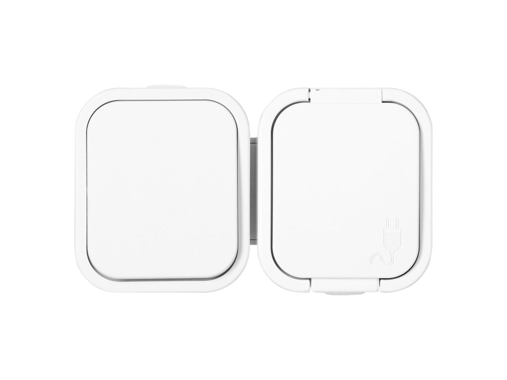 Comutator unipolar aplicat + Priză simplă 2P+E B2, IP54, GWN-B2, alb