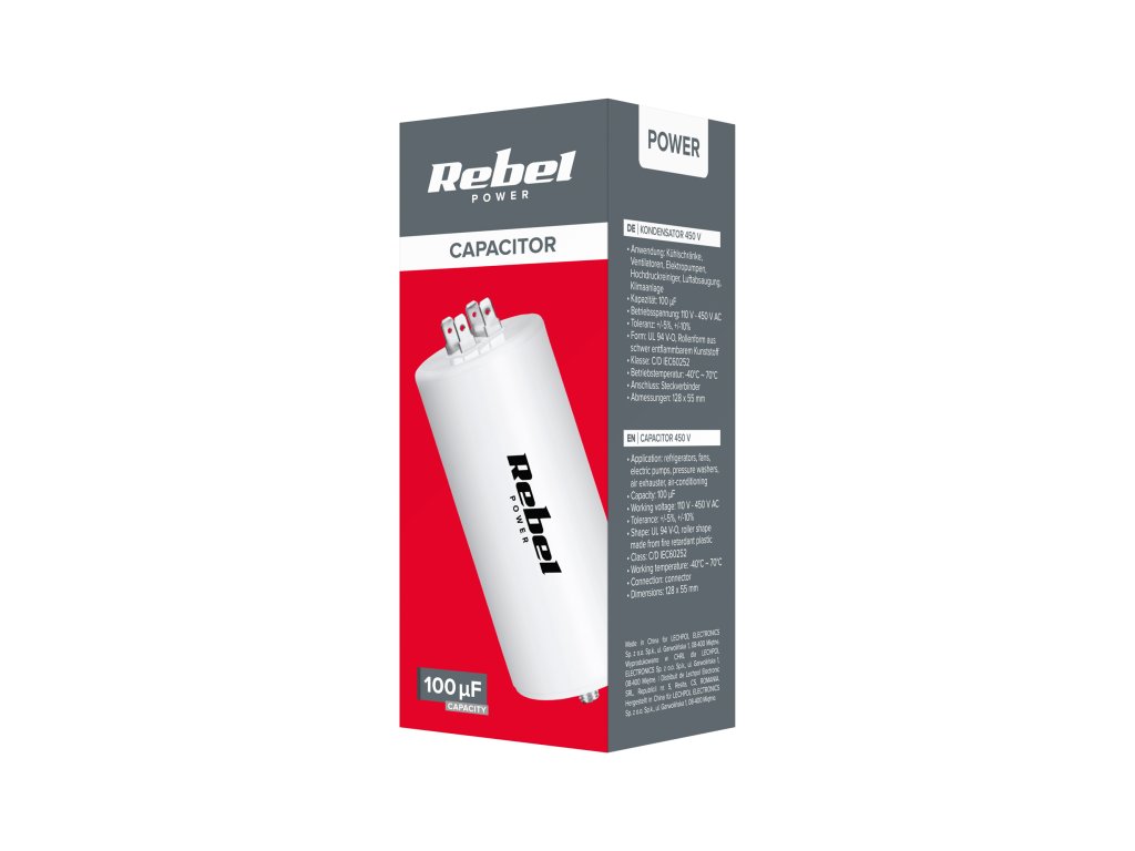 Utilizare: frigidere, ventilatoare, pompe electrice, mașini de spălat, ventilatoare, aer condiționatCapacitate: 100 uF