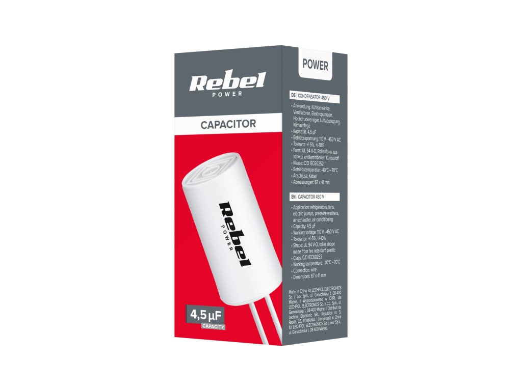 Utilizare: frigidere, ventilatoare, pompe electrice, mașini de spălat, ventilatoare, aer condiționatCapacitate: 4,5 uF