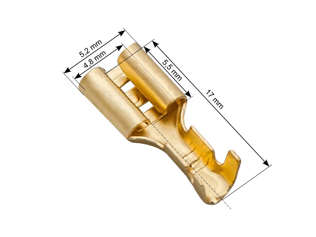 Conector plat neizolat 4,8/0,8Date specifice:- Dimensiuni în galerie- Material: alamă- Grosime material [mm]: 0,3- Conductor [mm2]: 0,5-08.