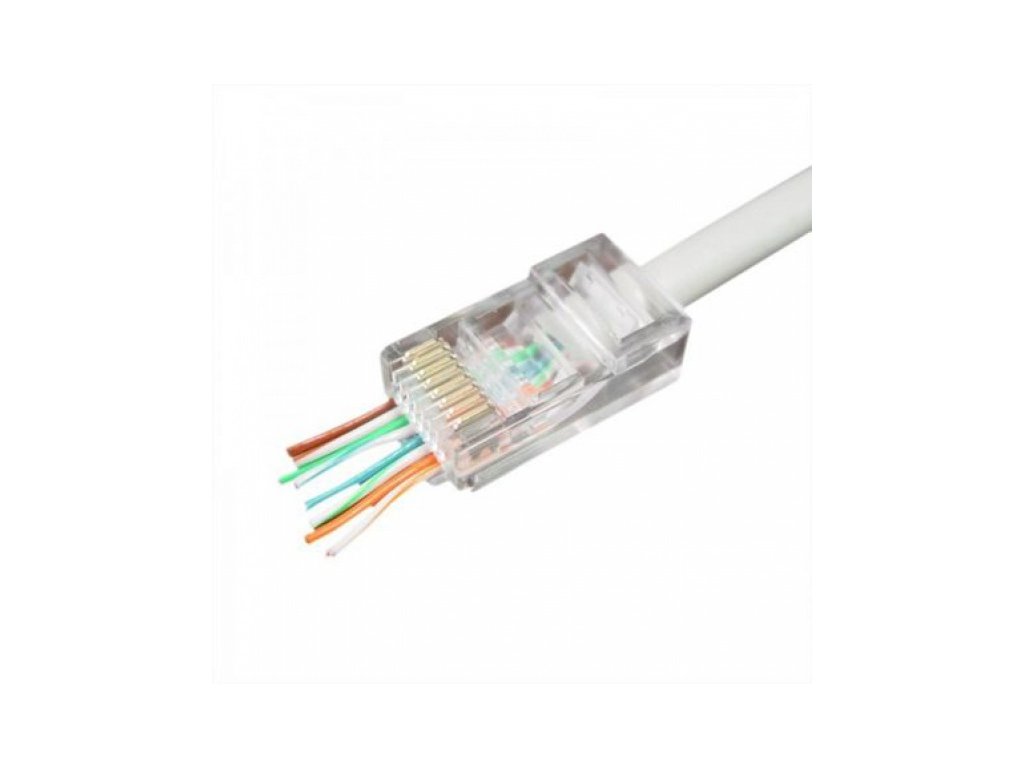 Conector de calitate 8P8C - RJ45 cat6e Pass Through permite trecerea întregului cablu prin mufăAvantajul în comparație cu sertizarea tradițională a conectorilor este că acest sistem permite trecerea conductorilor prin priză și aranjarea uniformă.