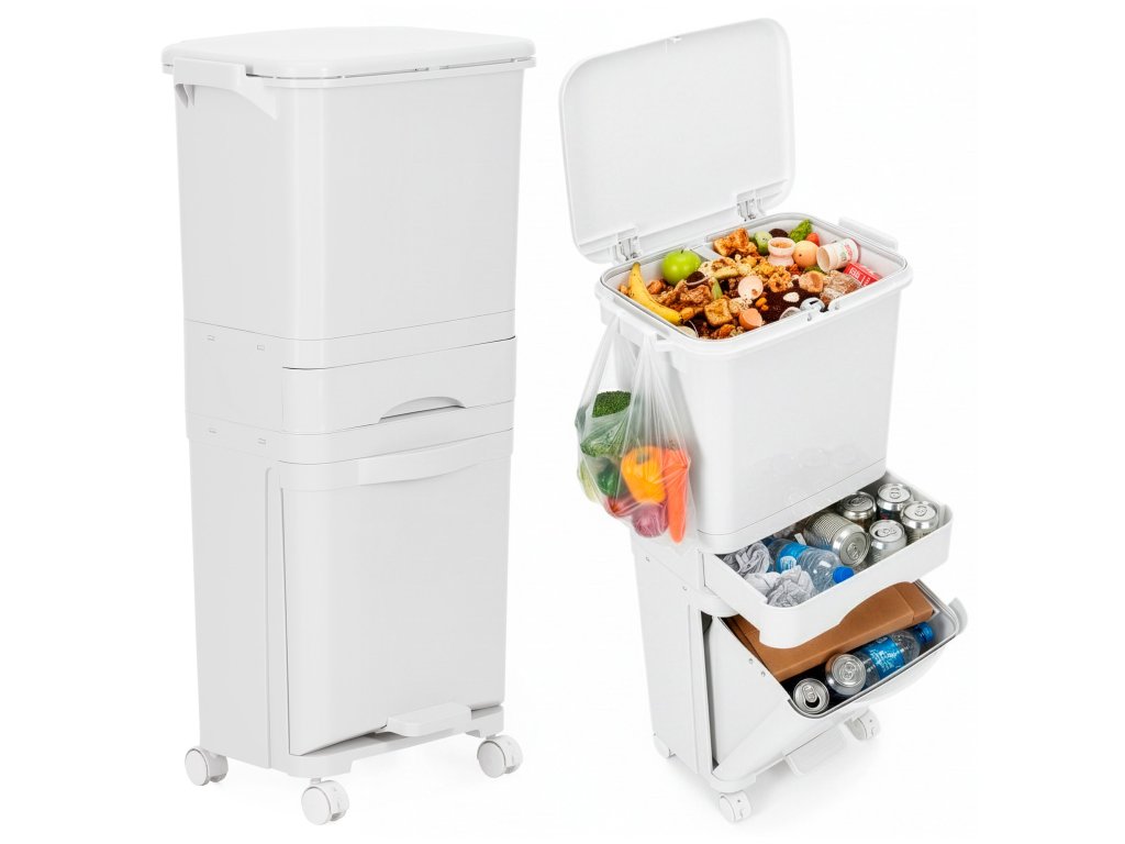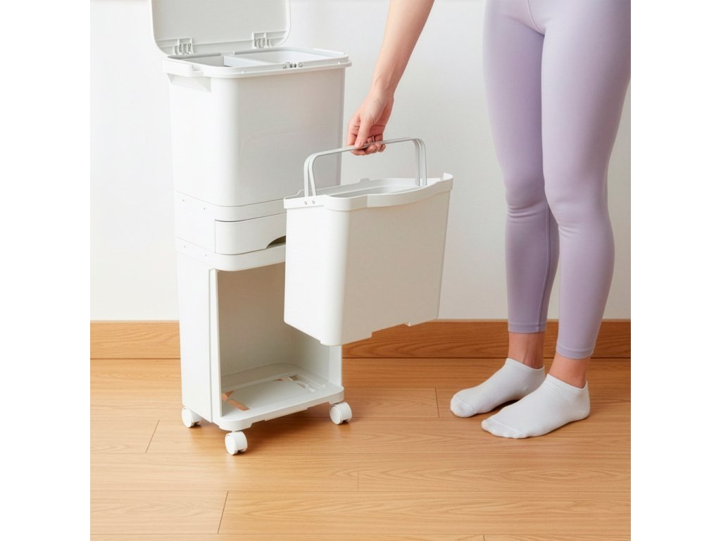 - Camera superioară se deschide cu un capac, sertarul din mijloc se trage, camera inferioară se deschide cu un pedale