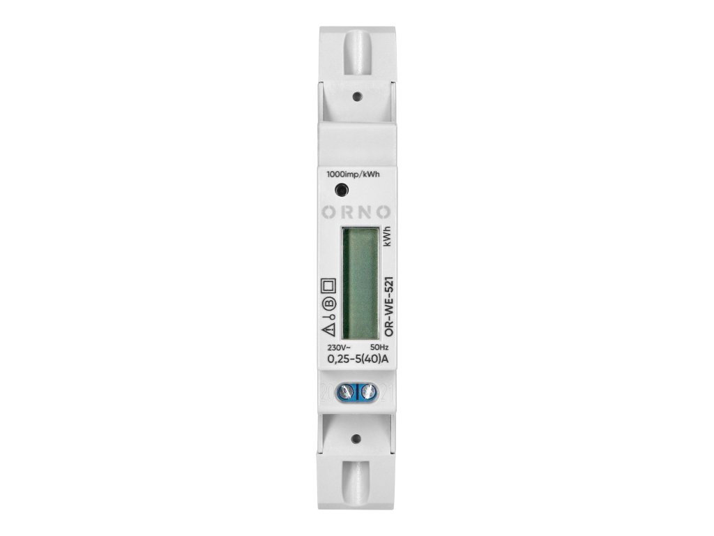 Dispozitiv pentru afișarea datelor în kWh. Un circuit electronic special, cu flux de curent și tensiune aplicată, generează impulsuri proporționale cu energia consumată. Consumul de energie pe fază este semnalizat prin clipirea LED-ului. Numărul de impulsuri este calculat în puterea consumată, iar valoarea sa este afișată pe un ecran LCD iluminat (5+1). Măsurarea energiei se efectuează în conformitate cu următoarele standarde: EN50470-1:2006, EN50470-3:2006, directiva MID 2014/32/UE.