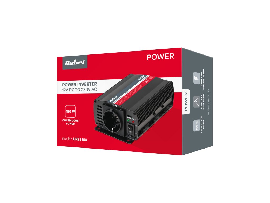 Convertor de tensiune pentru mașină 12 V DC / 230 V ACPutere de ieșire: 150 W