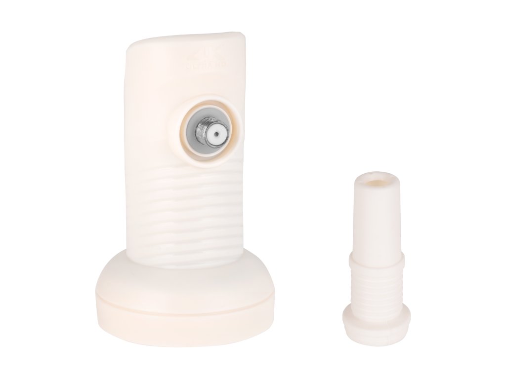 Convertor satelit de înaltă calitate, destinat utilizării cu o antenă satelit echipată cu un suport universal de convertor de 40 mm. Convertorul funcționează cu toate receptoarele DVB-S/DVB-S2. Servește pentru recepția programelor satelit transmise în banda Ku. Recomandat și pentru recepția programelor în calitate UHD/4K. Echipat cu ieșire F pentru conectarea decodorului.
