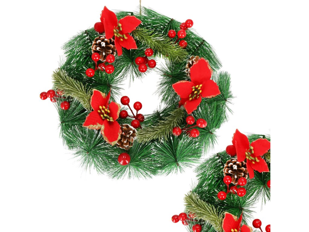 - Decorat cu: fructe de soc, conuri, podoabe, cadouri, frunze aurii