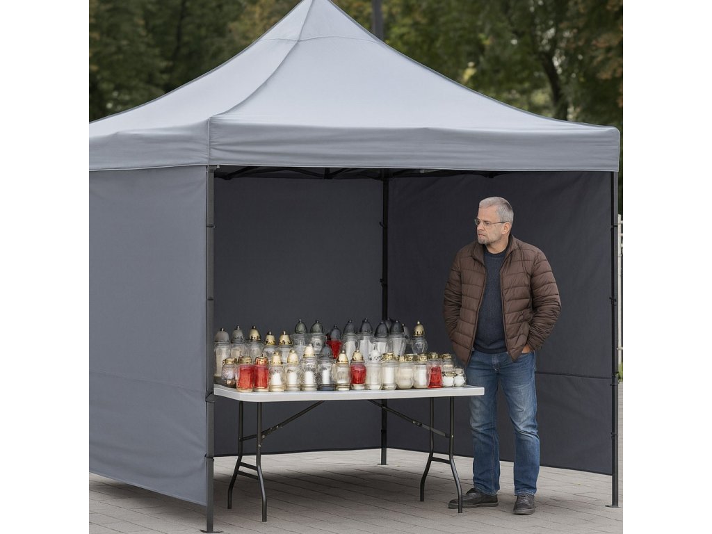- În set: acoperiș, 3 x pereți de 3 m, cadru, husă cu mânere închise cu fermoar, 8 țăruși și 4 corzi, instrucțiuni