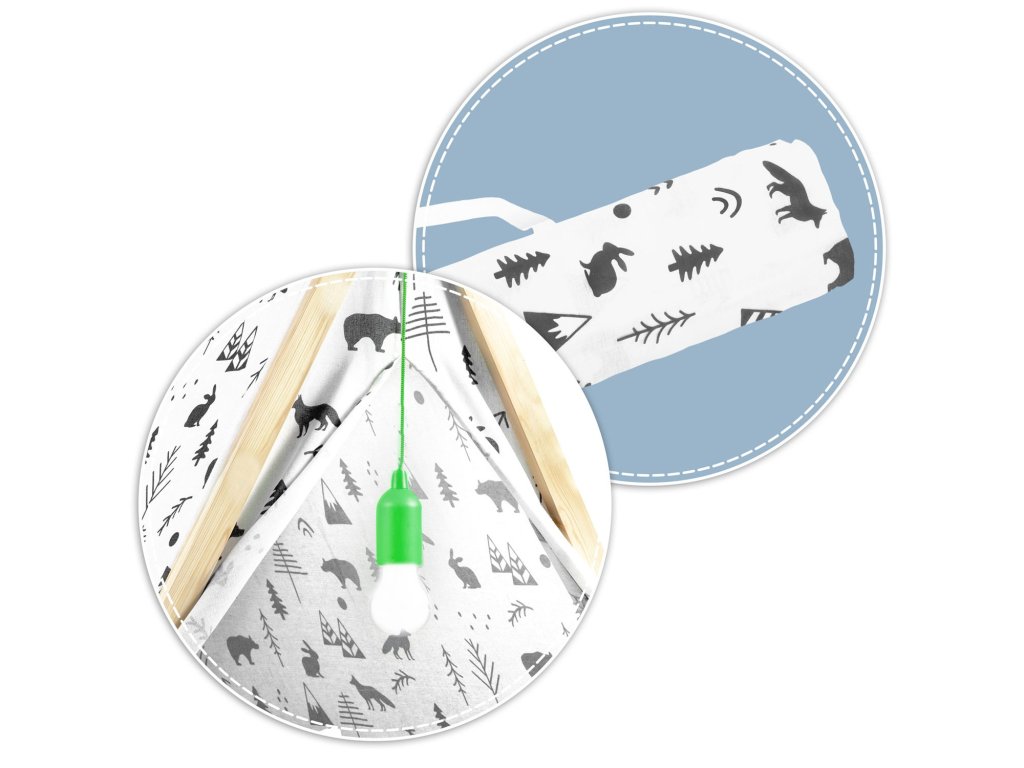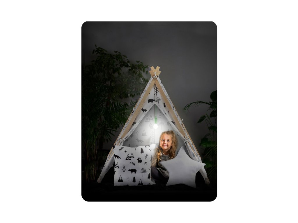 TIPI vine cu o lampă LED stilată și o husă de cort GRATIS!