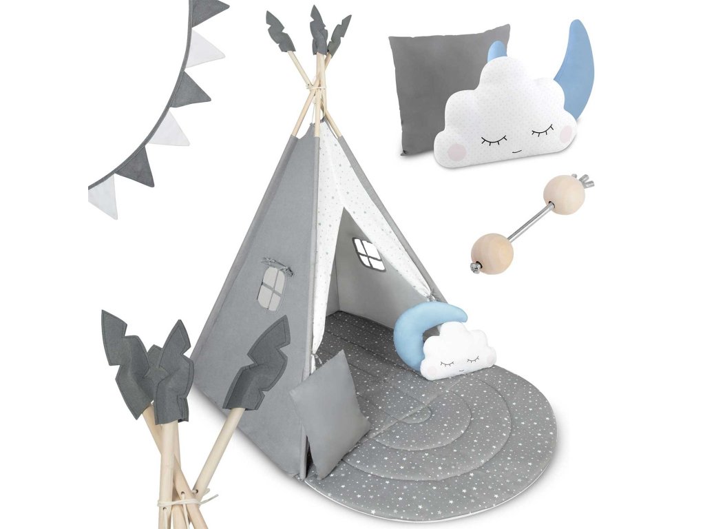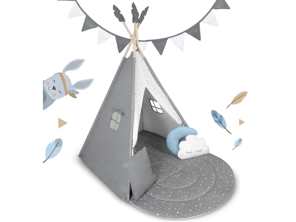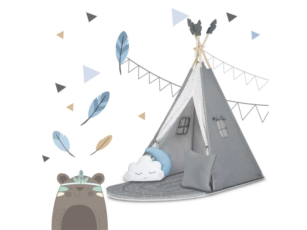 Cort tip teepee în formă de TIPI indian completează decorul camerei copilului.