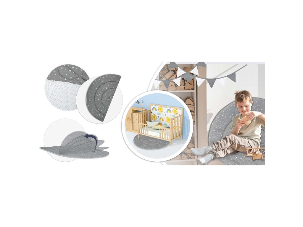 în interiorul tipi-ului, dar și ca covor separat în alte camere. Alegeți confortul: saltea se închide confortabil și rapid folosind capse de plastic. Salteaua în două piese poate fi folosită în două moduri. Fiind atașată la perete, partea în formă de semicerc poate fi transformată într-un suport sau complet detașată.Accesorii proiectate cu grijă!