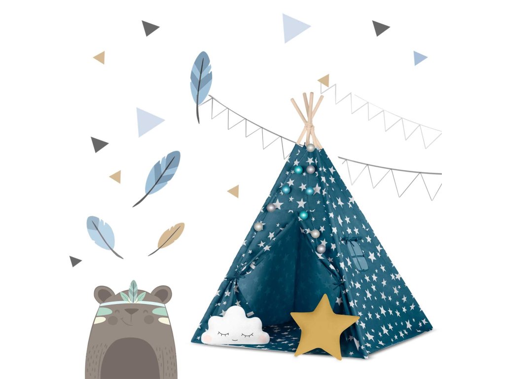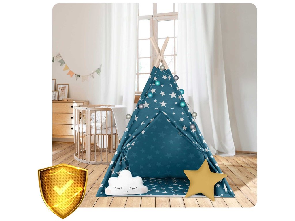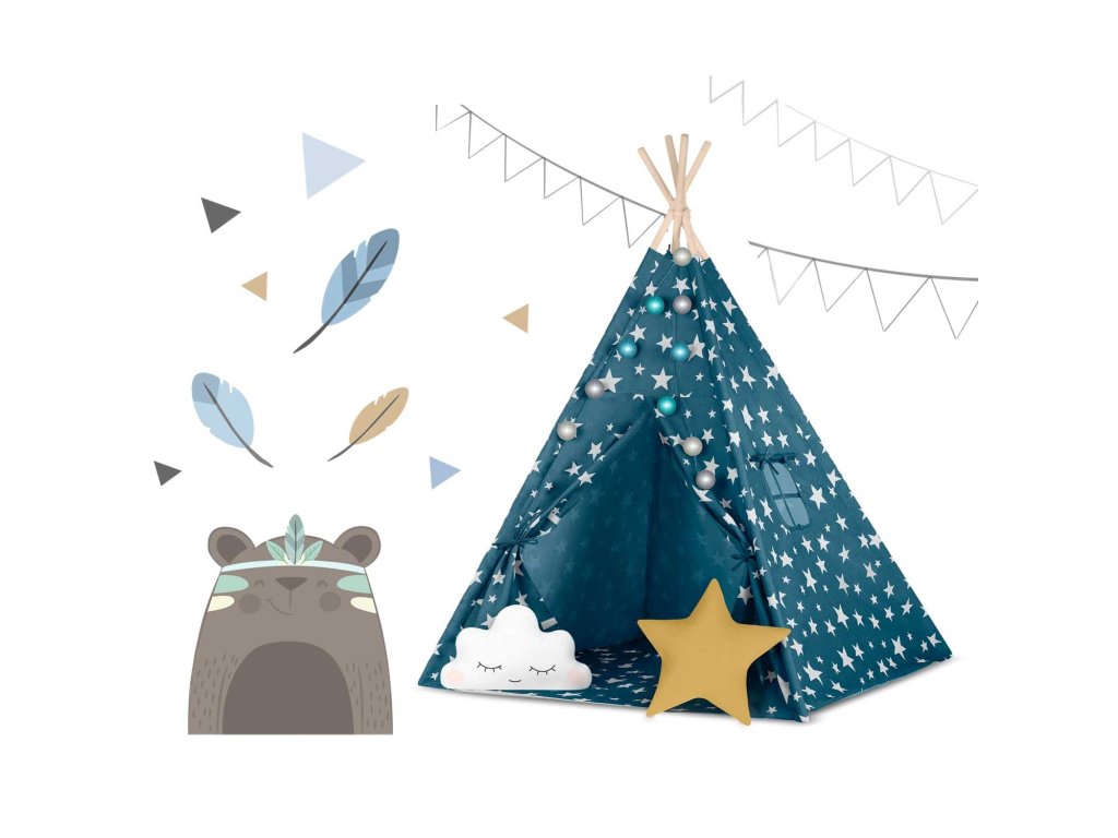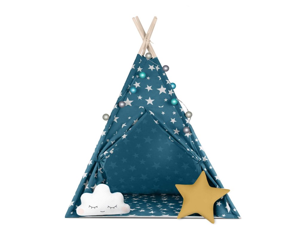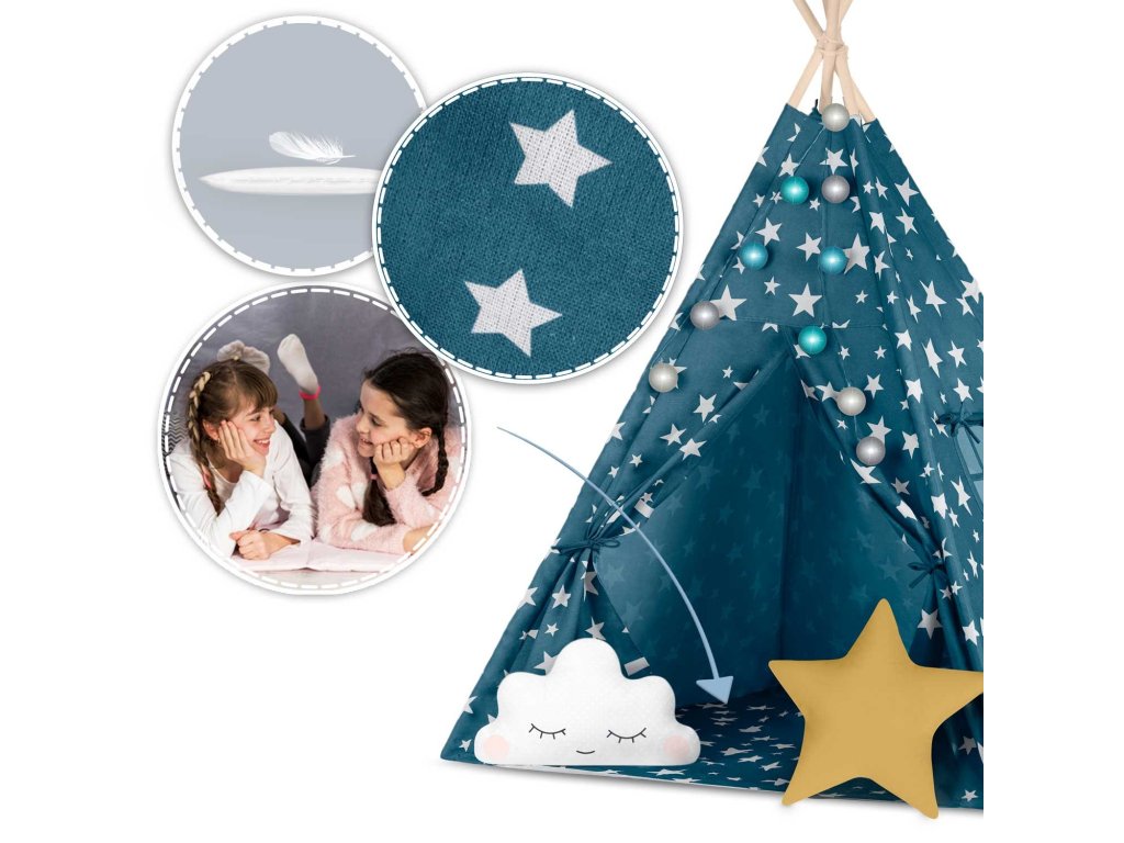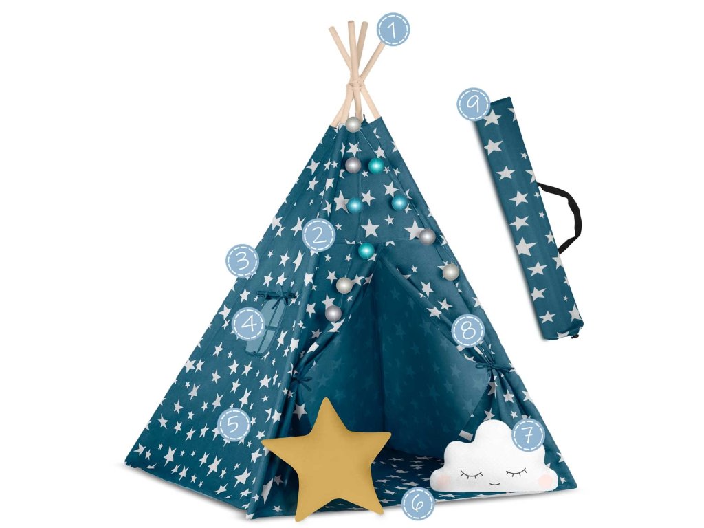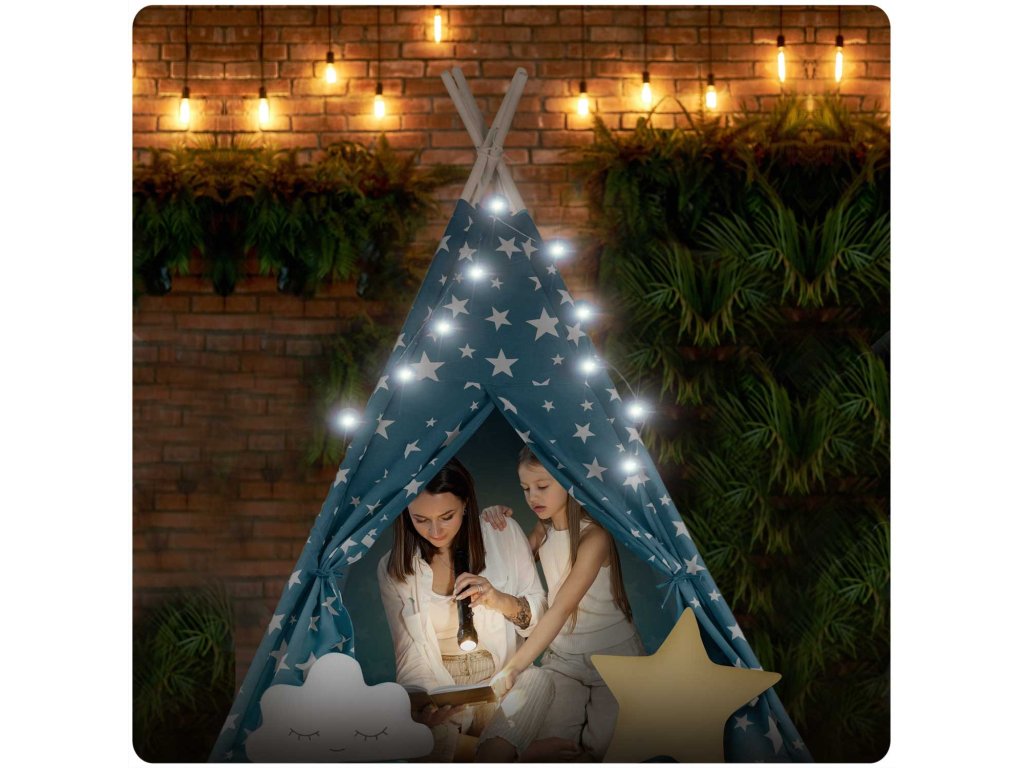 Cort teepee pentru copii Tepee cu lumini Nukido - albastru