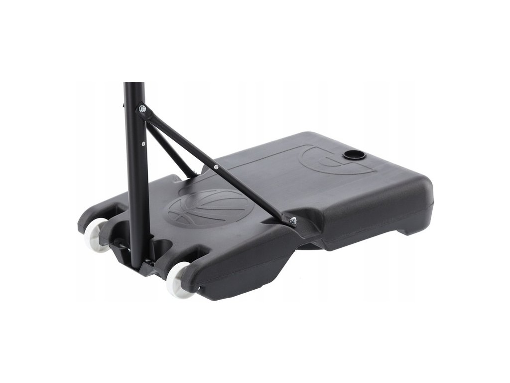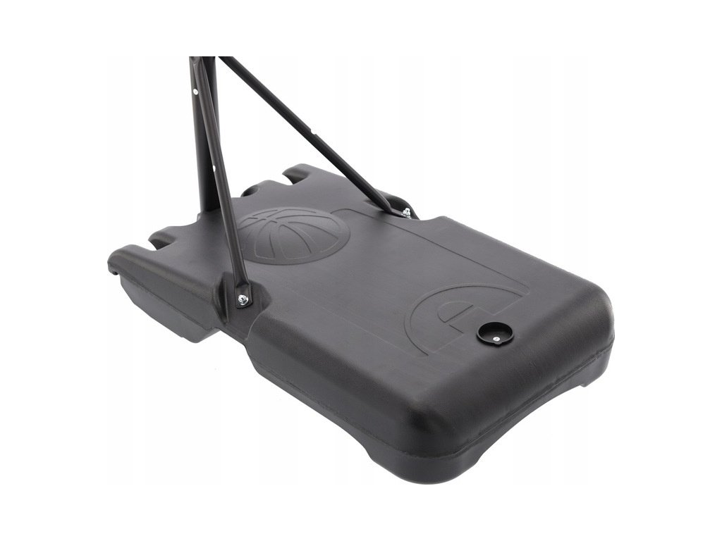 Baza este echipată cu roți, ceea ce facilitează mutarea coșului dintr-un loc în altul. Poate fi umplută cu apă sau nisip, asigurând astfel stabilitate și siguranță suplimentară în timpul jocului.
