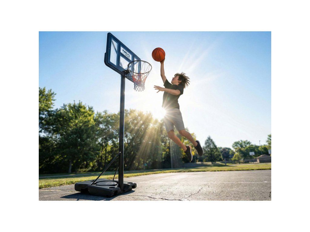 Prinde mingea și pornește jocul – unde vrei, când vrei. Portabil, pliabil coșul Neo-Sport îți oferă libertate totală de joc: de la curte până la parcare.