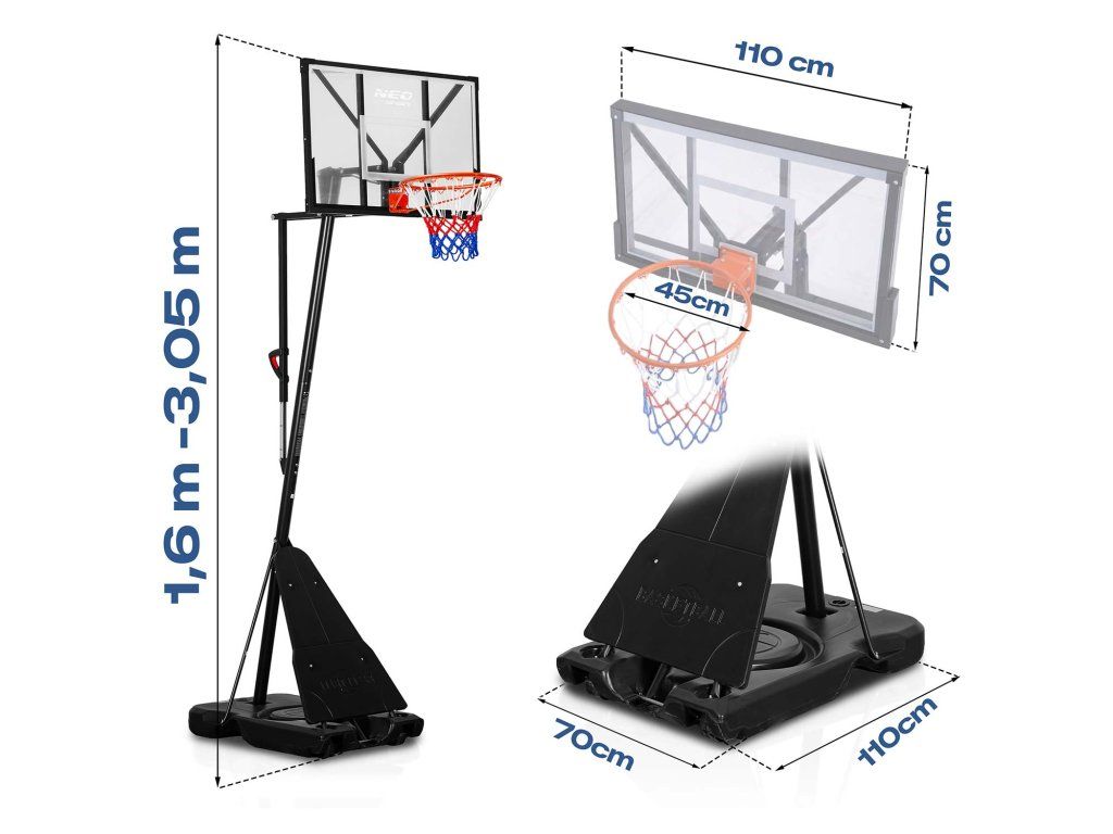 Coș de baschet reglabil 160-305 cm, stabil, mare, Neo-Sport NS-284