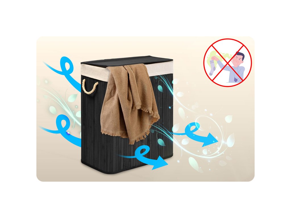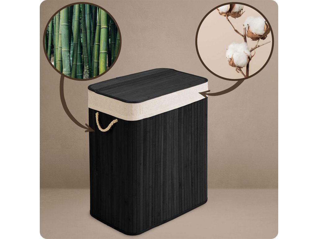 Fibrele naturale de bumbac și bambus absorb activ umiditatea și neutralizează mirosurile neplăcute, fără a le reține în coș.