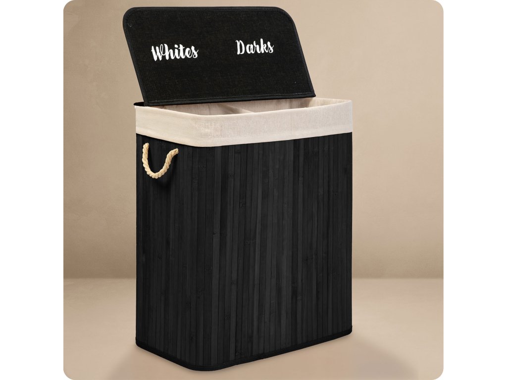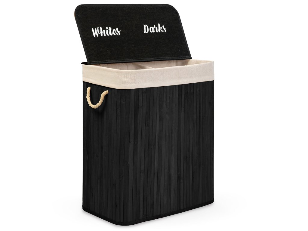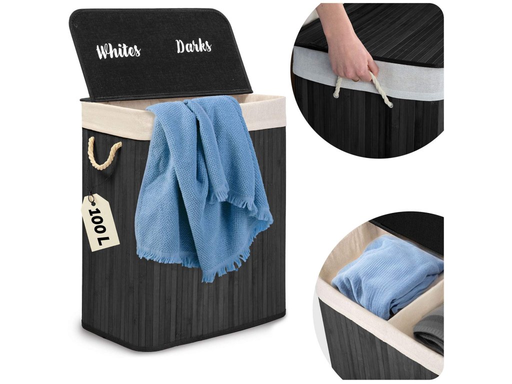 Coș din bambus pentru rufe cu 2 compartimente 100 l