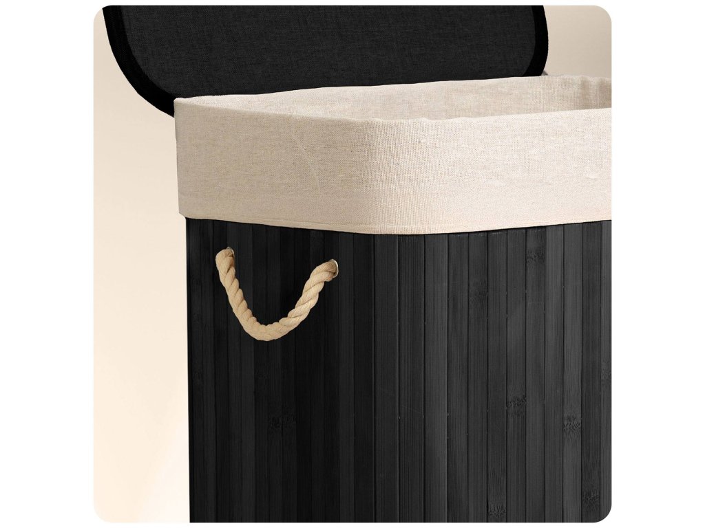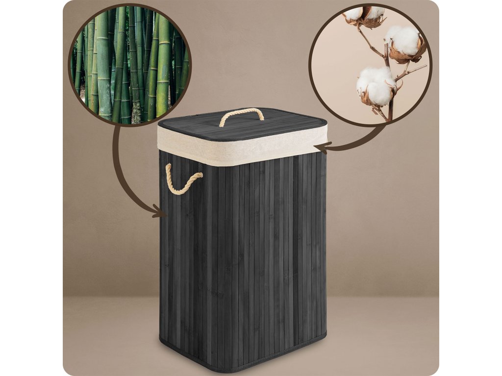Fibrele naturale de bumbac și bambus absorb activ umiditatea și neutralizează mirosurile neplăcute, fără a le reține în interiorul coșului.