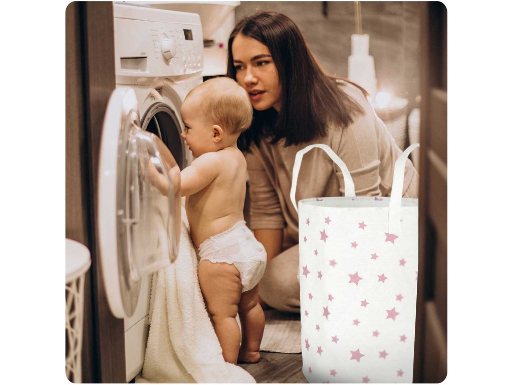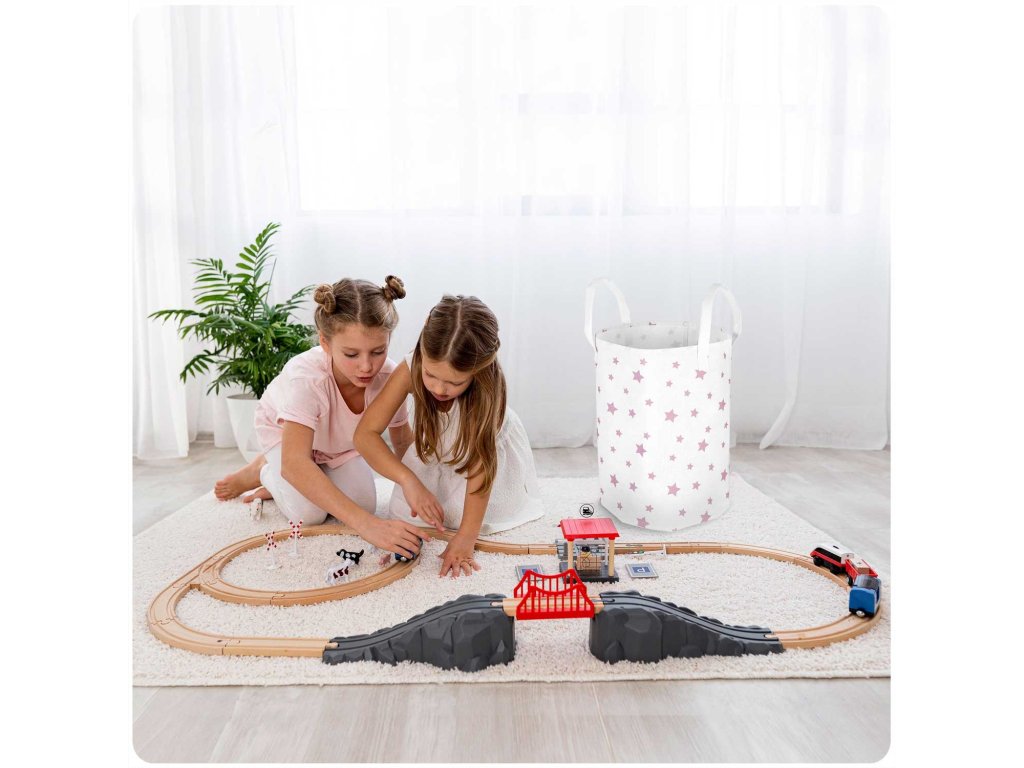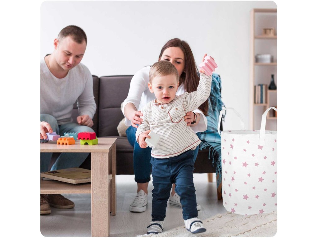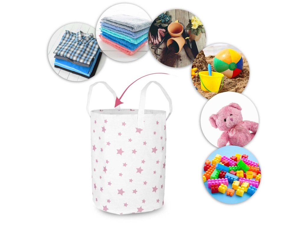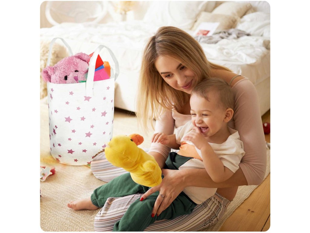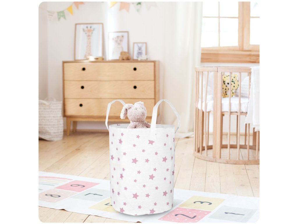Coș pentru jucării - alb cu steluțe