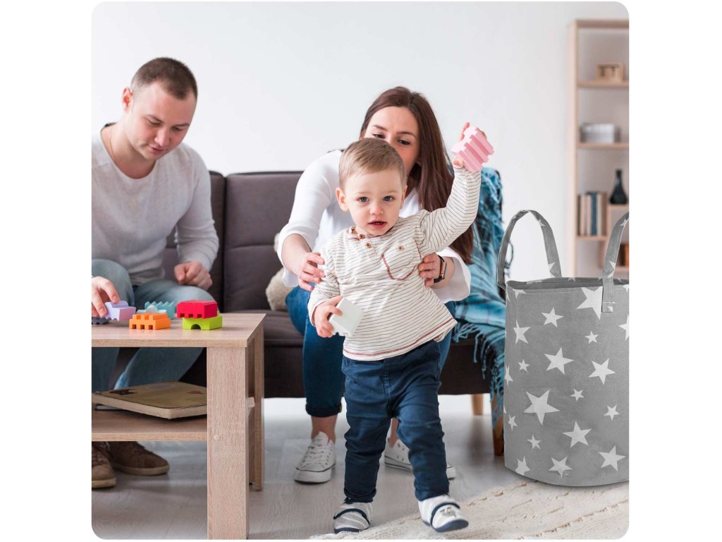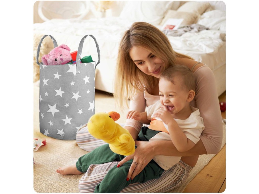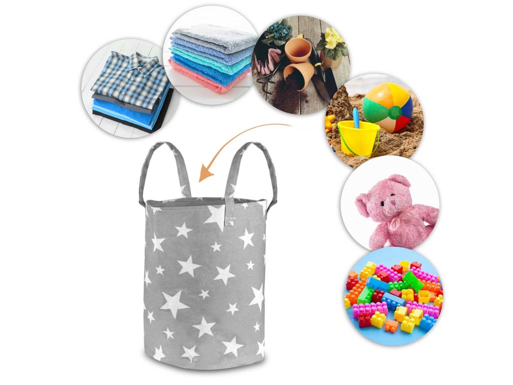Coș pentru jucării - gri cu stele