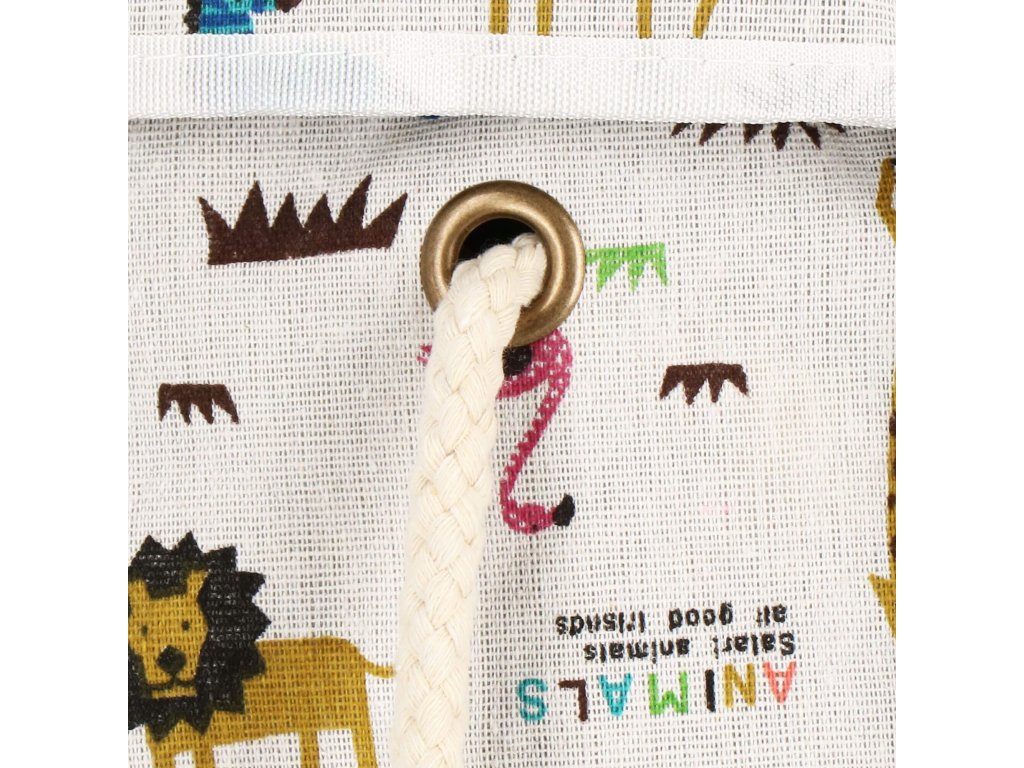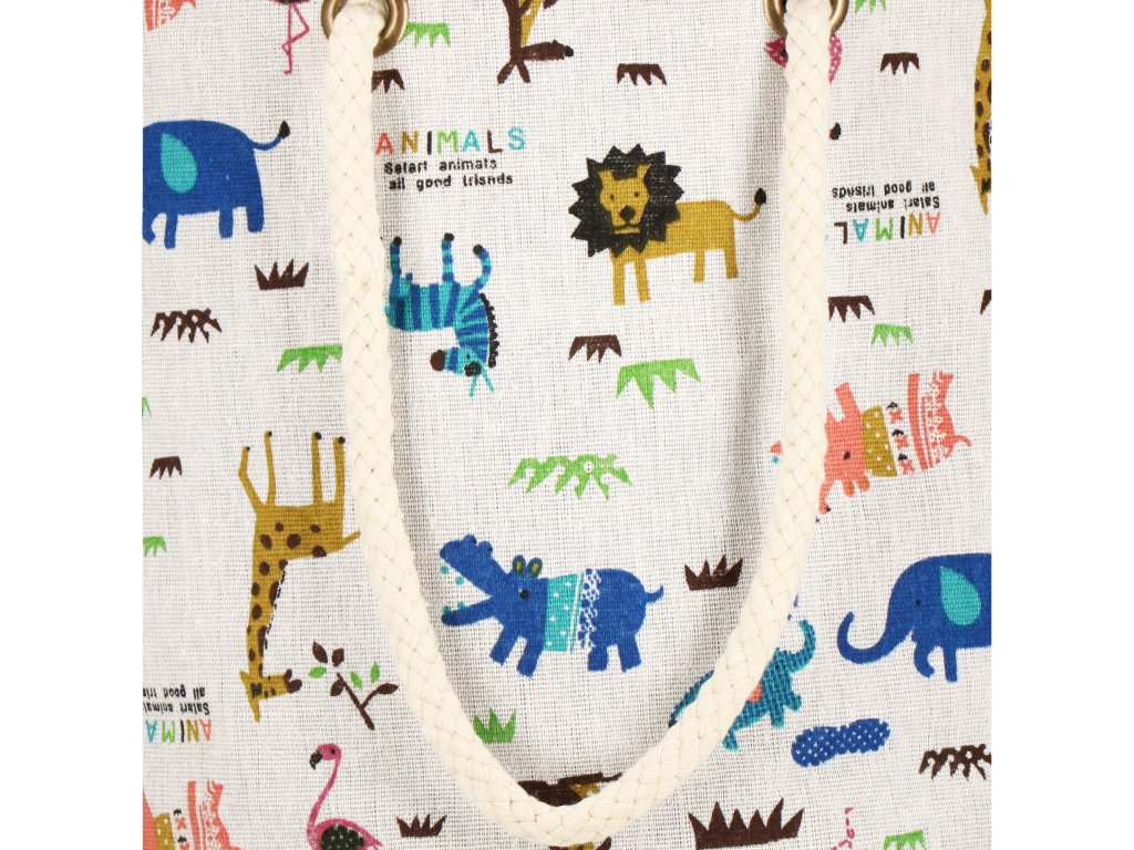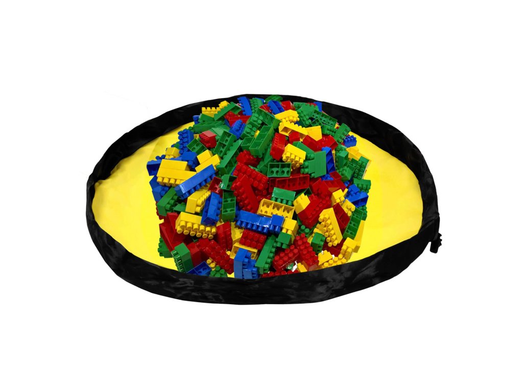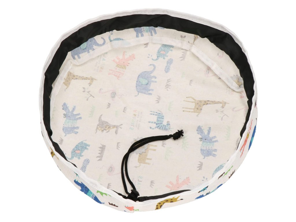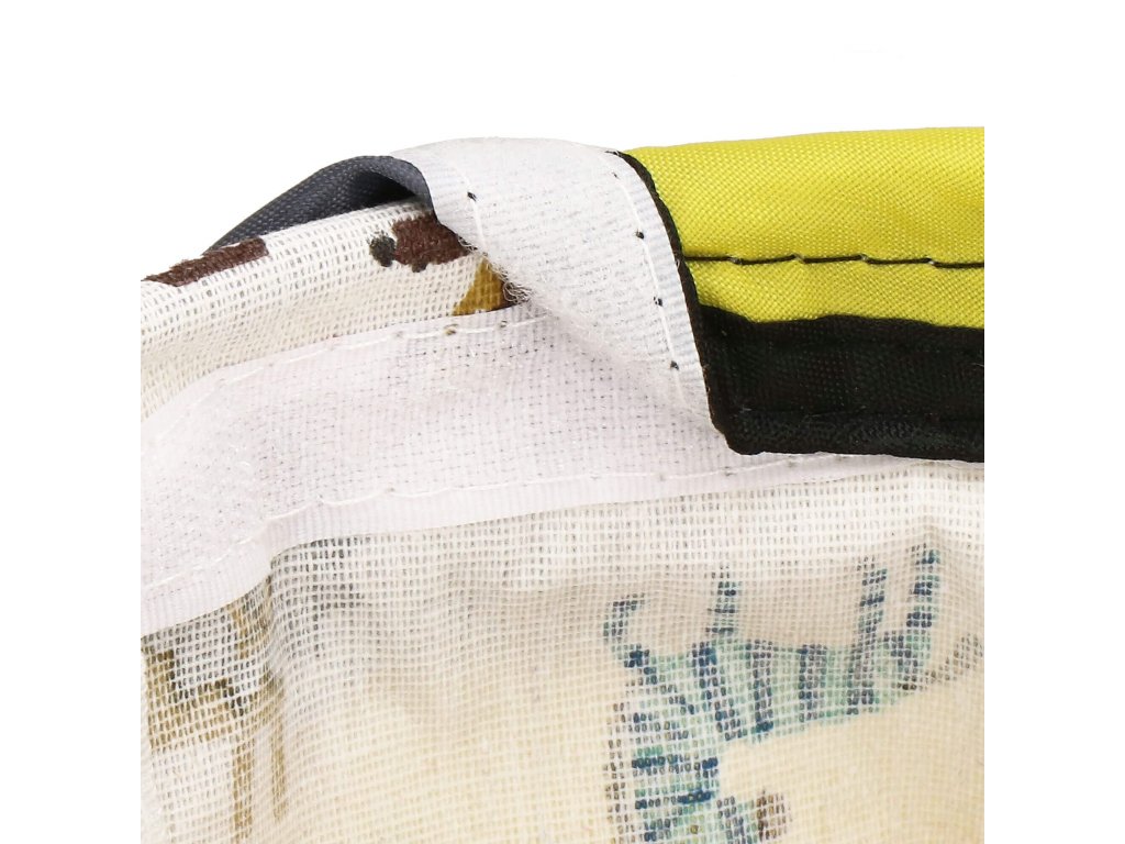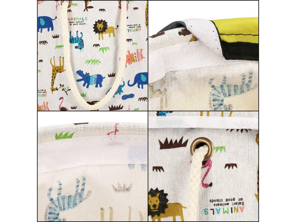 Salteaua are un șnur cusut, care facilitează colectarea jucăriilor mici într-un singur loc și mânere care facilitează transportul acesteia.