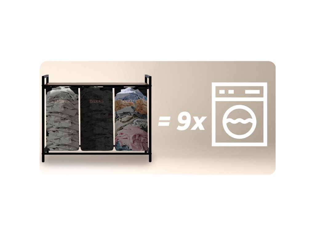 3 compartimente care facilitează sortarea și spălarea hainelor