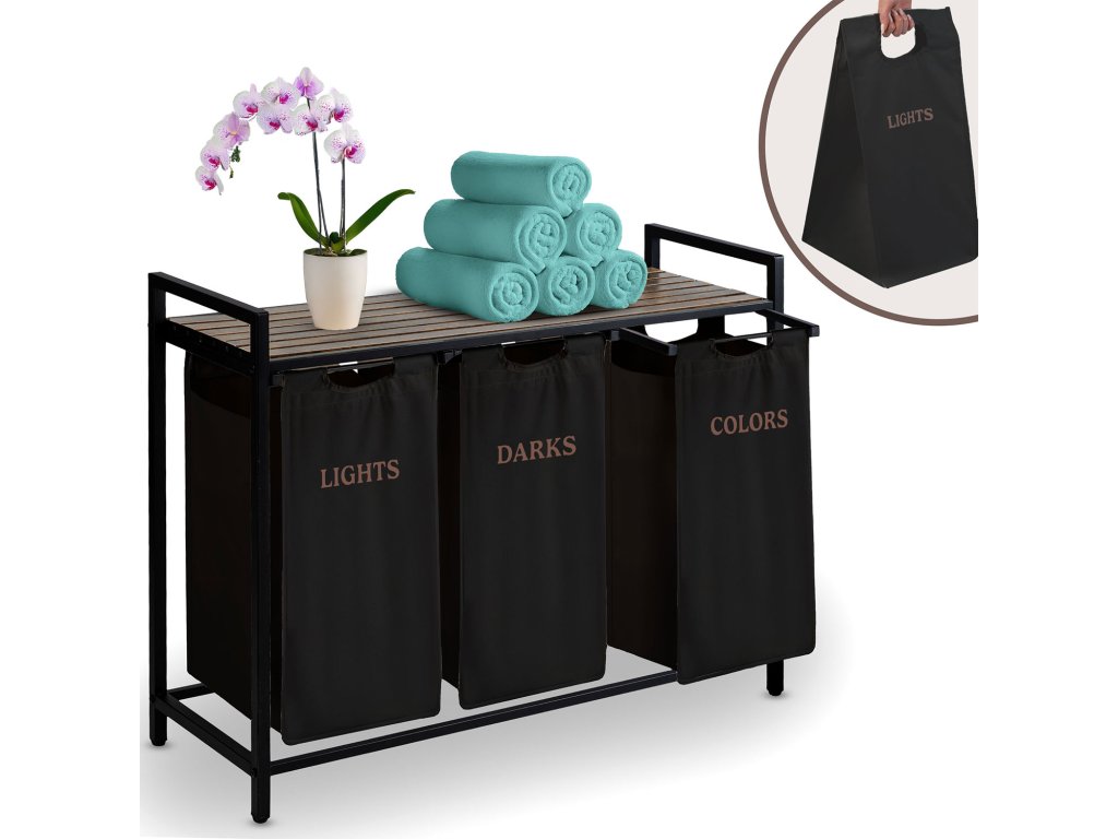 Coș pentru rufe cu trei compartimente cu suport 120 l Massido