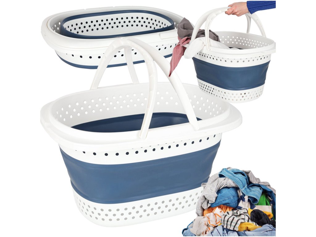 Coșul este fabricat din materiale durabile și ușoare, este rezistent la umiditate și se curăță cu ușurință. Mânerele solide facilitează transportul său, iar interiorul spațios poate găzdui haine, prosoape sau lenjerie de pat. În starea pliată, ocupă foarte puțin spațiu, astfel încât poate fi depozitat confortabil, de exemplu, în dulap sau sub mașina de spălat.