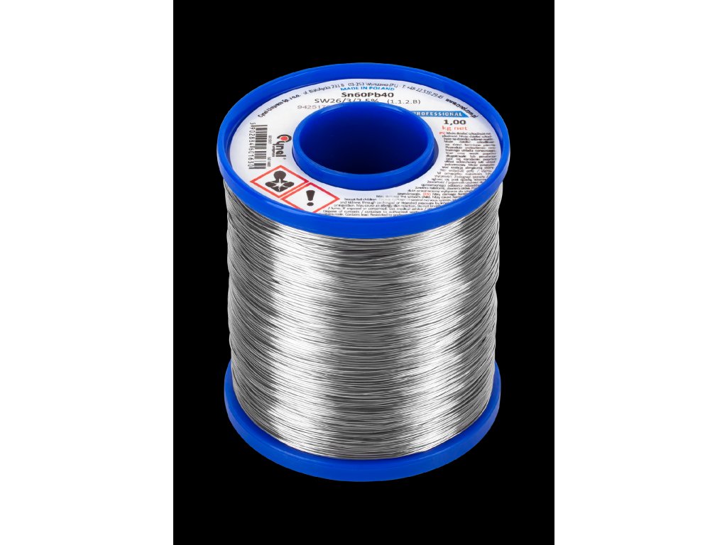Staniu cu diametrul de 2 mm, ambalaj de 1 kg, compoziție - 60% staniu, 40% plumb, flux, CYNEL
