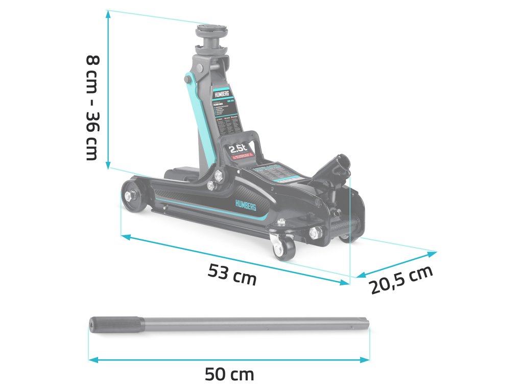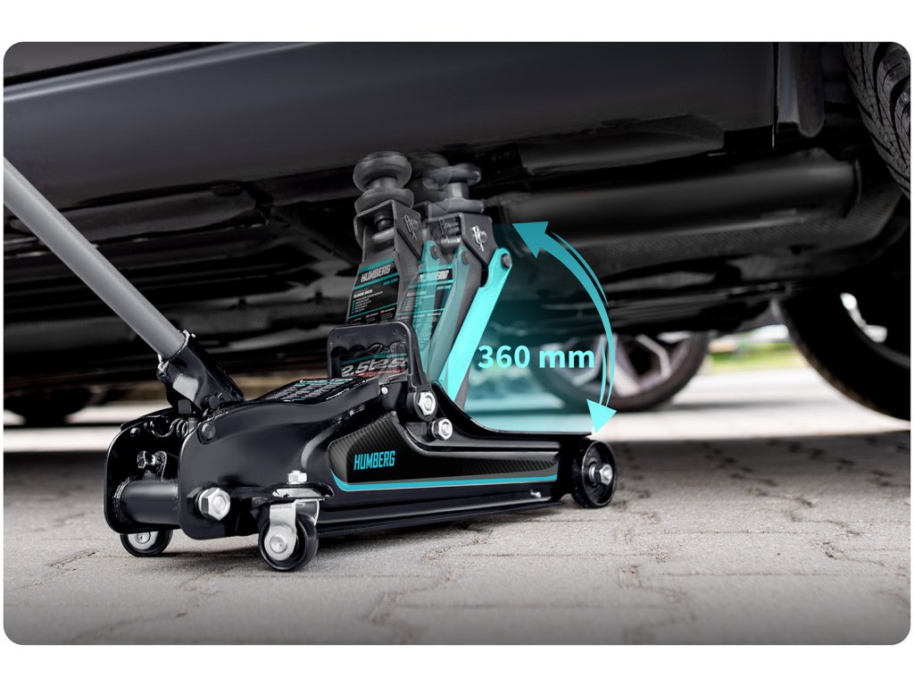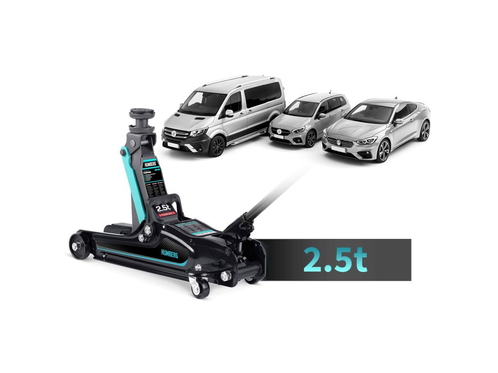 Capacitate de până la 2,5 tone — cric ideal pentru mașini, mașini joase, multivan-uri și vehicule utilitare mici (până la 2,5 t).
