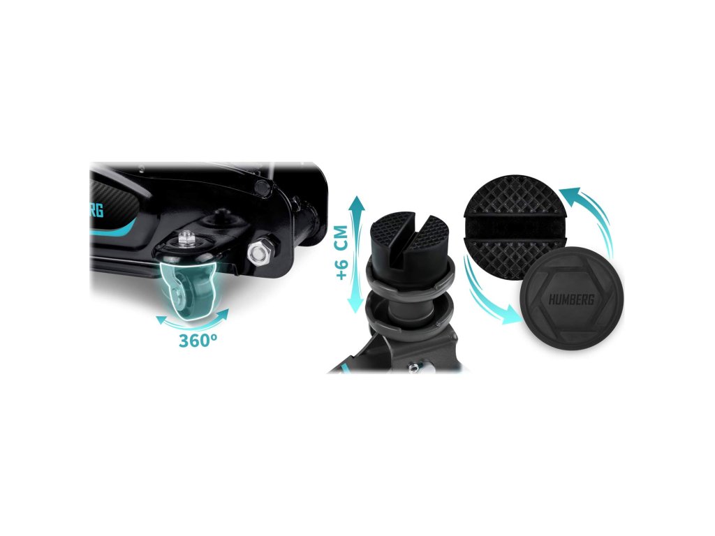 Roțile din spate se rotesc la 360° — roțile pivotante cu rulmenți facilitează manevrarea.