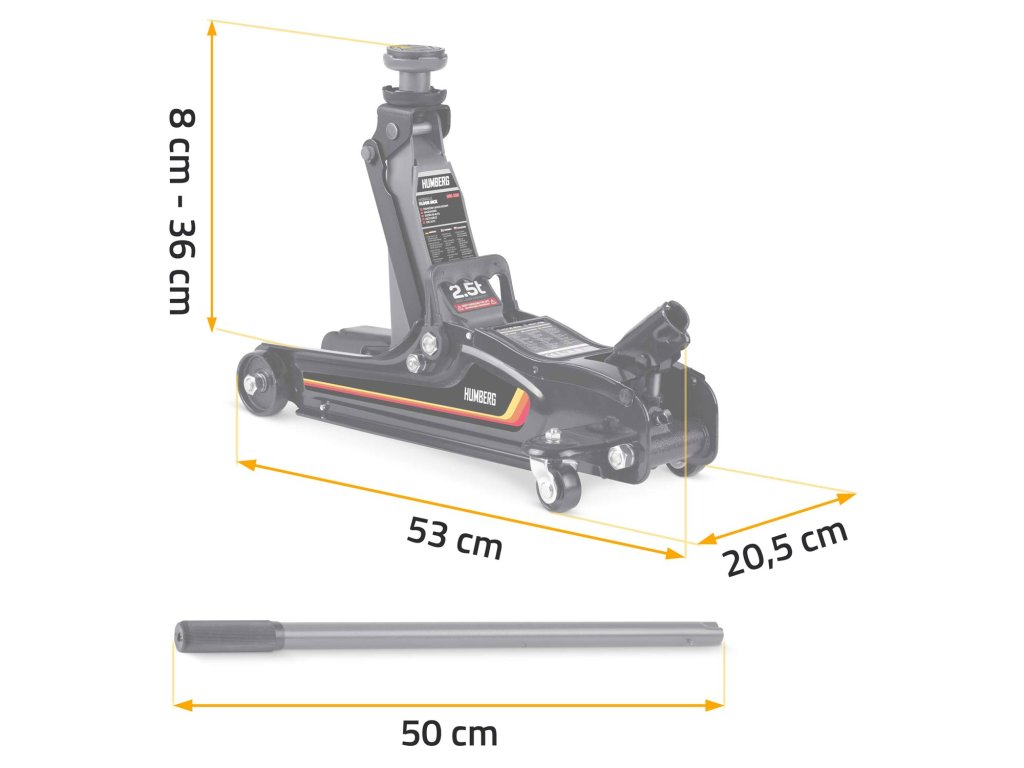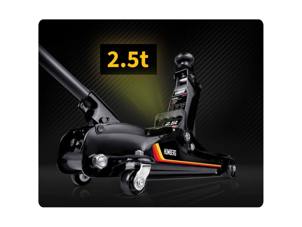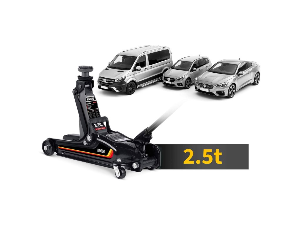 Capacitate de până la 2,5 tone — cricul ideal pentru autoturisme, mașini joase, precum și pentru multivanuri și vehicule mici de marfă (până la 2,5 t).