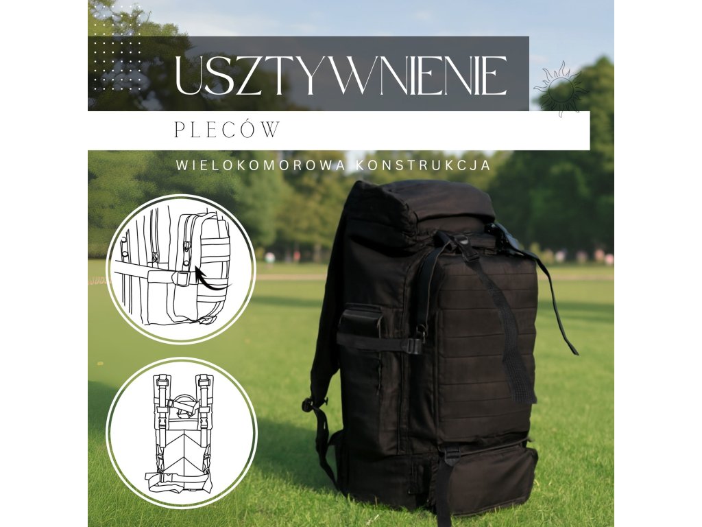 - Înălțimea totală a rucsacului: aprox. 70 cm