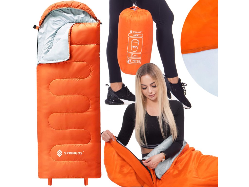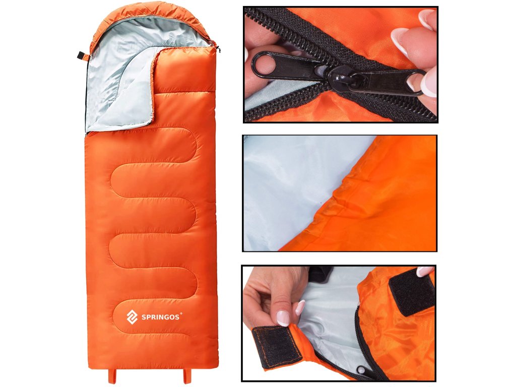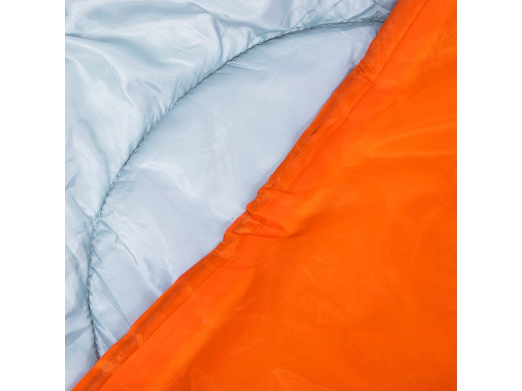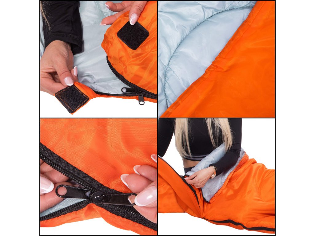 - Culoarea sacului de dormit și a husei portocaliu, interiorul sacului de dormit gri, finisaje (șnururi, fermoar, bandă cu arici) negre
