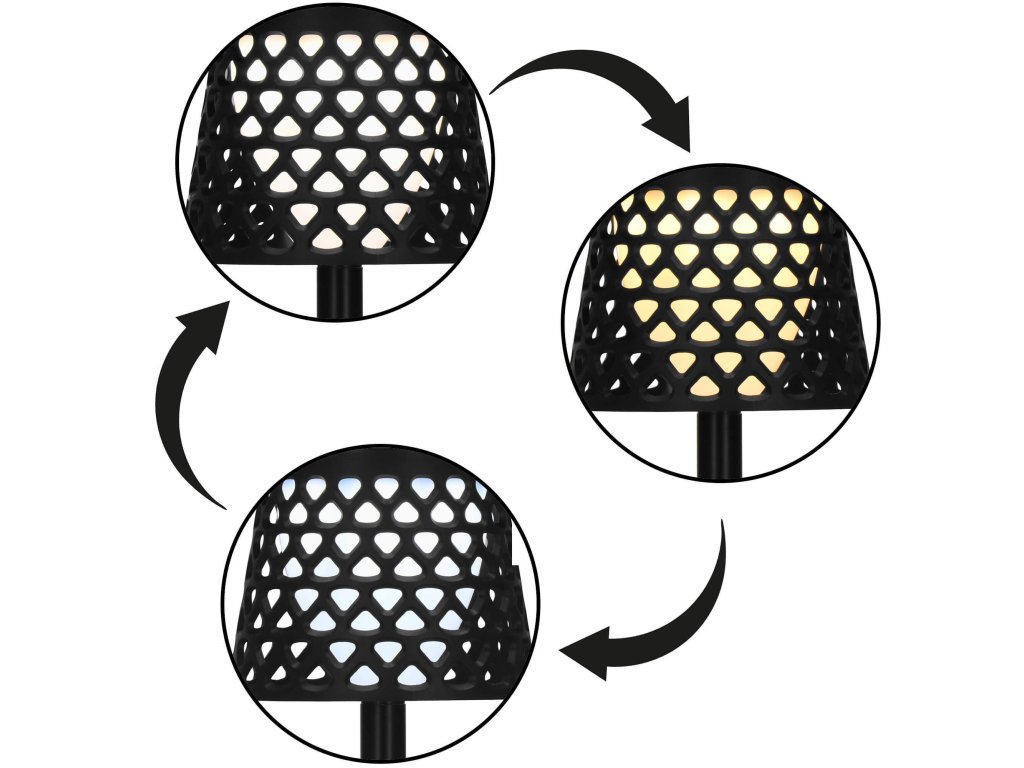- Opțiuni de montaj în trei moduri: 1) lampă de podea, 2) lampă de perete, 3) lampă înfiptă în pământ