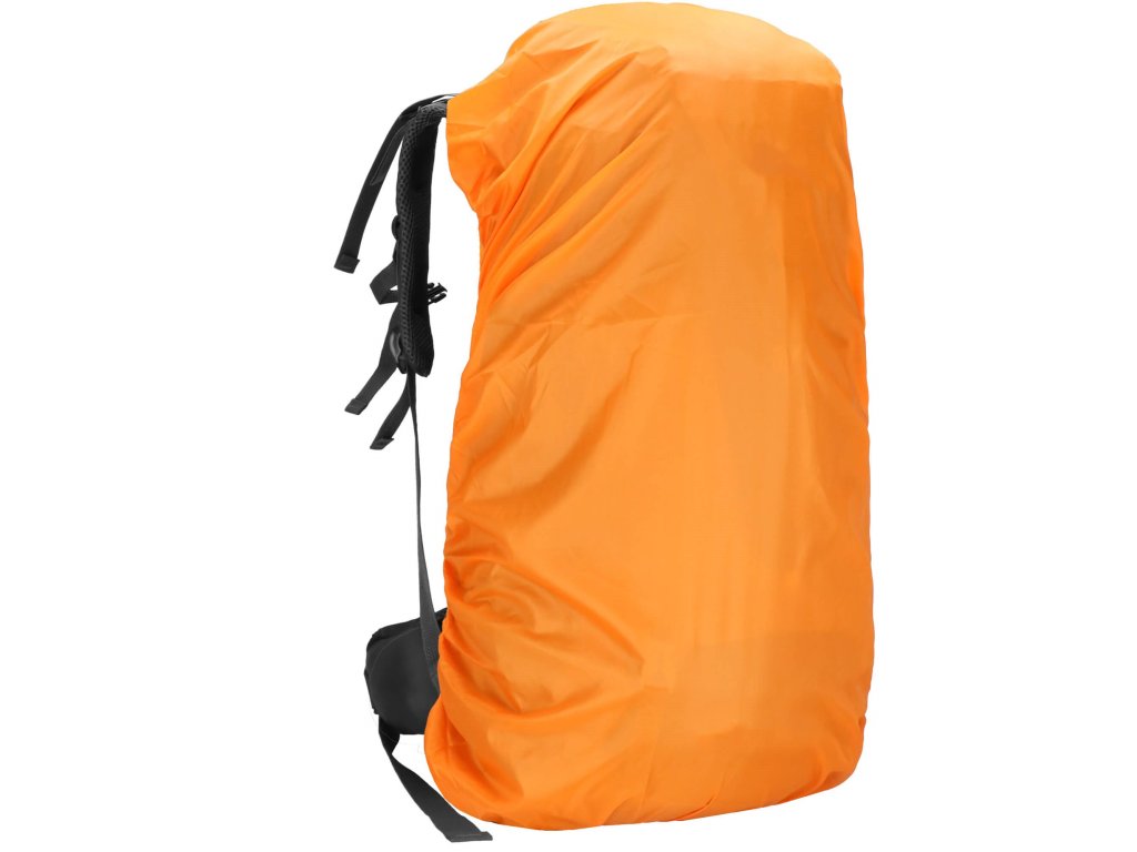 - În set, o husă de ploaie de culoare portocalie cu bordură gri, cu elastic.
