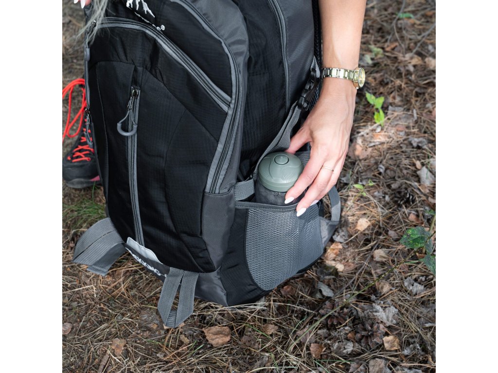 - Două mânere suplimentare din curele de material în partea inferioară din fața rucsacului (lățime 2,5 cm) - pentru agățat cu susul în jos (pentru uscare).