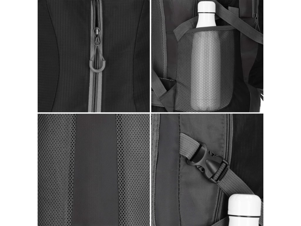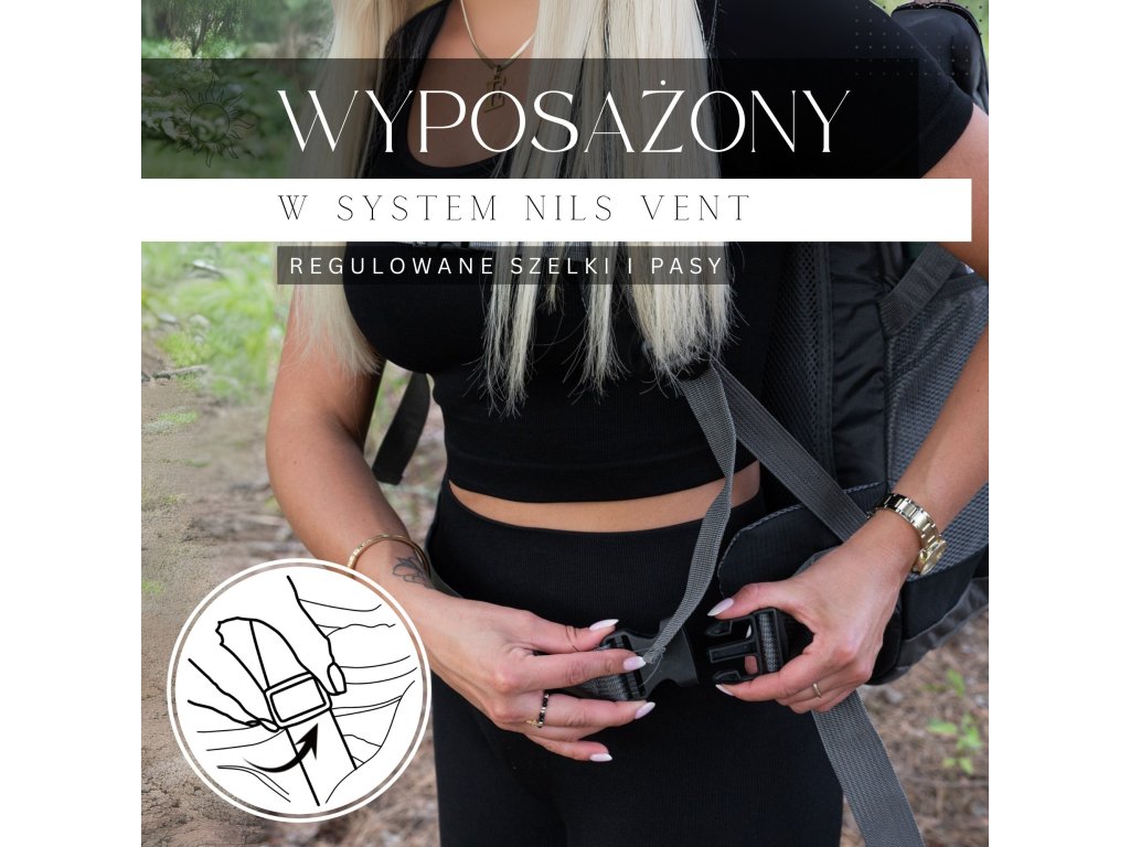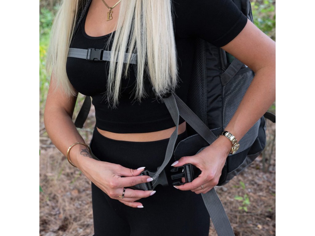 - Curele de comprimare cu catarame plasate pe părțile laterale și care se întind orizontal în jurul rucsacului