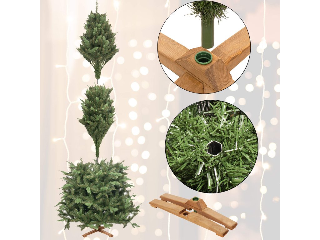 Bradul se vinde fără lumini și ornamente vizibile în fotografiile aranjate.