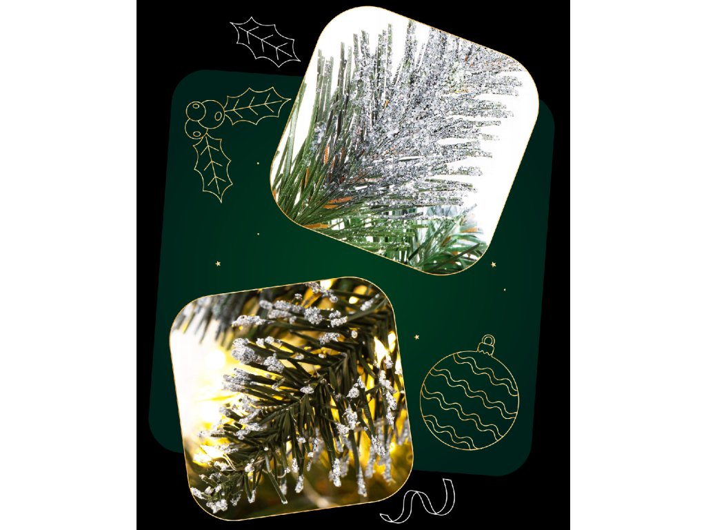 - Culoarea acelor: verde + capetele ramurilor cu două tipuri de brumare - alb și argintiu-glitter.