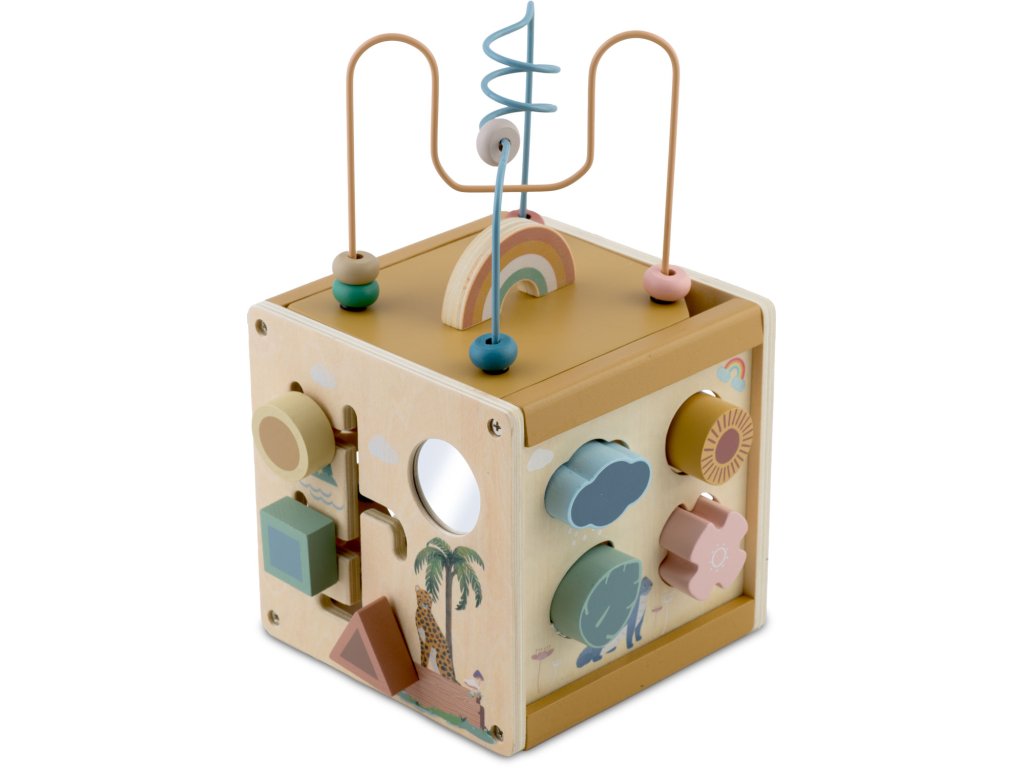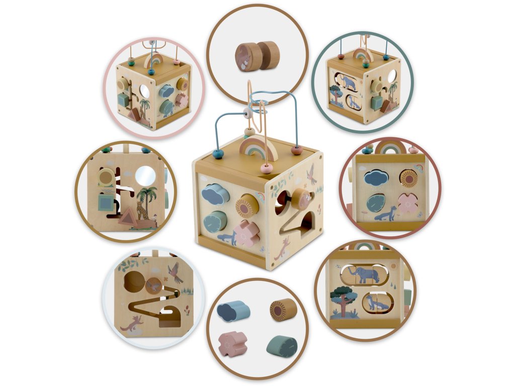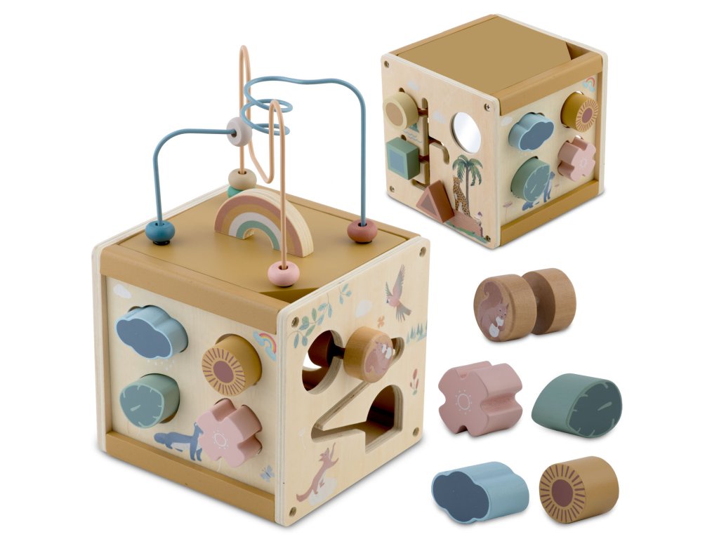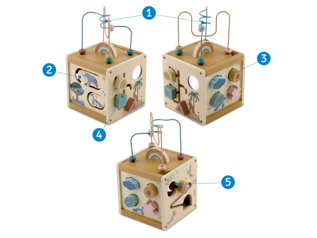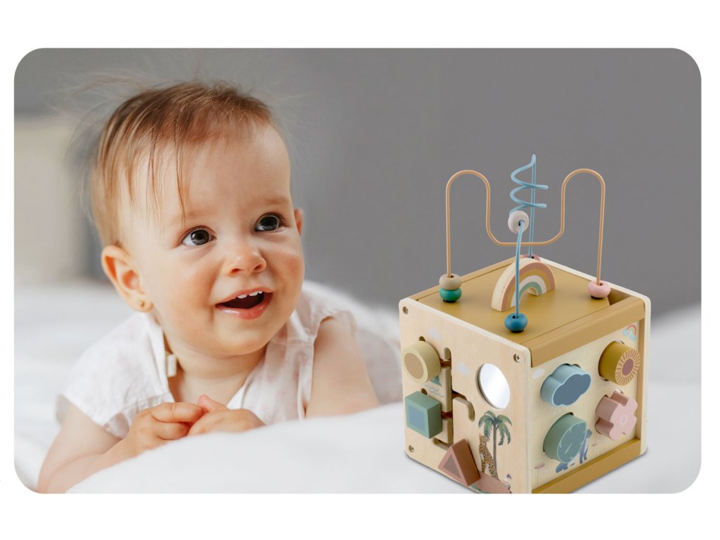 Dezvoltarea abilităților motorii: Cubul senzorial cu labirint de bile încurajează jocul și explorarea, dezvoltând abilitățile motorii ale copilului.