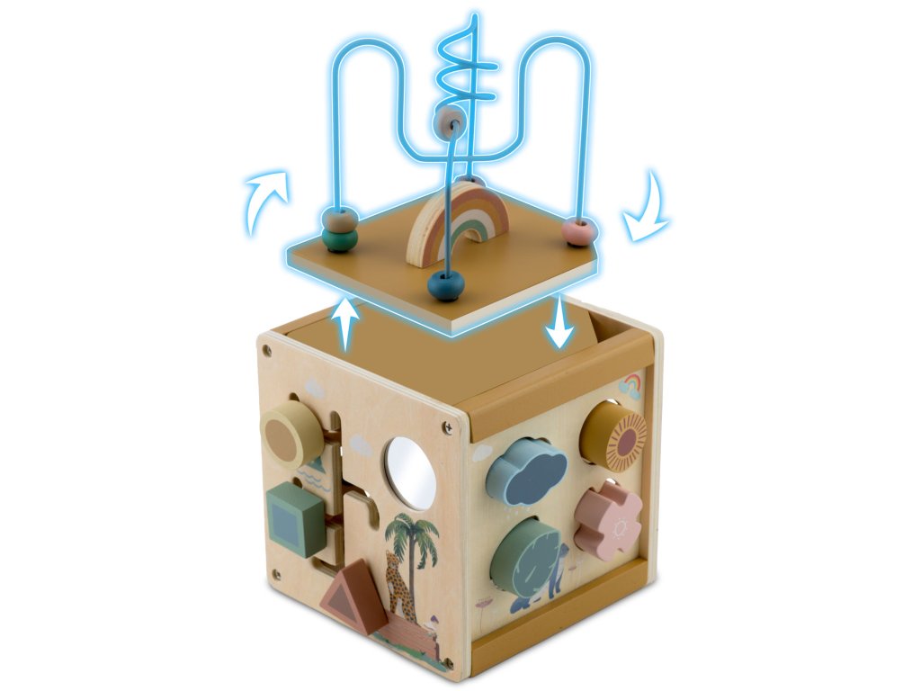 Labirinturile proeminente din această jucărie pot fi ascunse în interiorul cubului, facilitând depozitarea și transportul. Este sigur, estetic și permite o gestionare ușoară a spațiului.