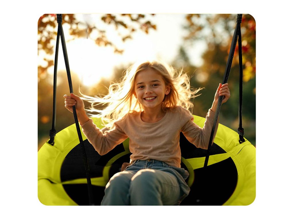 Datorită posibilității de reglare a înălțimii leagănului, adaptezi înălțimea leagănului la înălțimea copilului, asigurându-i o distracție sigură pe leagănul care va crește împreună cu el.
