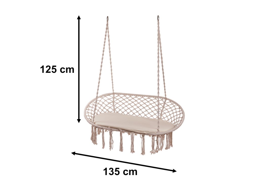 Leagănul de grădină va deveni centrul relaxării dvs. în aer liber. Datorită rezistenței sale ridicate (până la 240 de kilograme!) leagănul poate fi folosit de până la două persoane simultan. În plus, vine cu o pernă, ceea ce va face legănatul în confortul propriei grădini mai confortabil. Designul minimalist al leagănului se potrivește perfect cu verdele din grădină, creând astfel o amenajare impresionantă, iar ciucurii care atârnă de cadrul adaugă farmec întregului leagăn.