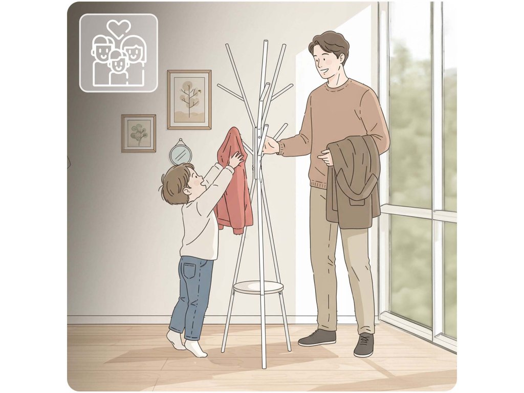 Se potrivește perfect și pentru familiile cu copii, datorită înălțimii sale ergonomice.Copiii vor ajunge cu ușurință la cârligele mai joase.