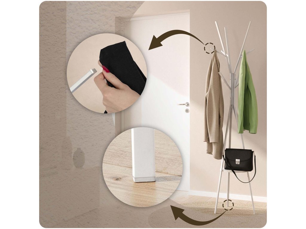 Protecție suplimentară.Cârligele și picioarele sunt terminate cu capace care protejează atât podeaua de zgârieturi, cât și hainele de agățături.