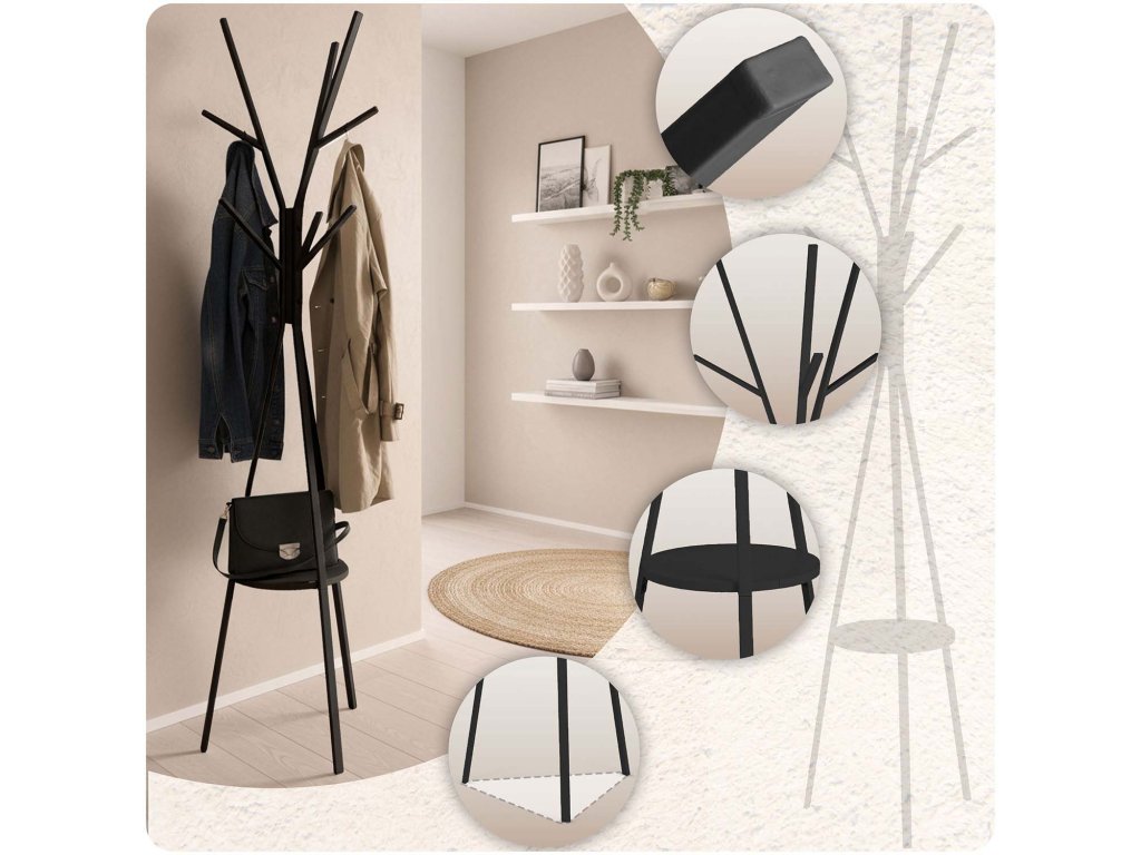 - jachete/paltoane (înălțimea cuierului este de 181 cm) - 9 cârlige,
