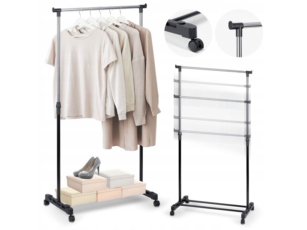 Cuierul prezentat are două suporturi , de exemplu pentru cravate etc. Practic pentru studenți, în timpul renovării este util în garderoba de acasă, dar și pentru paltoanele oaspeților. Ideal pentru o familie cu copii datorită înălțimii ergonomice ajustabile.