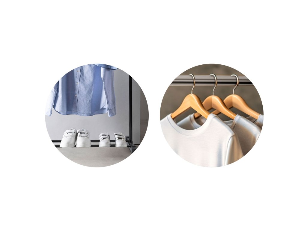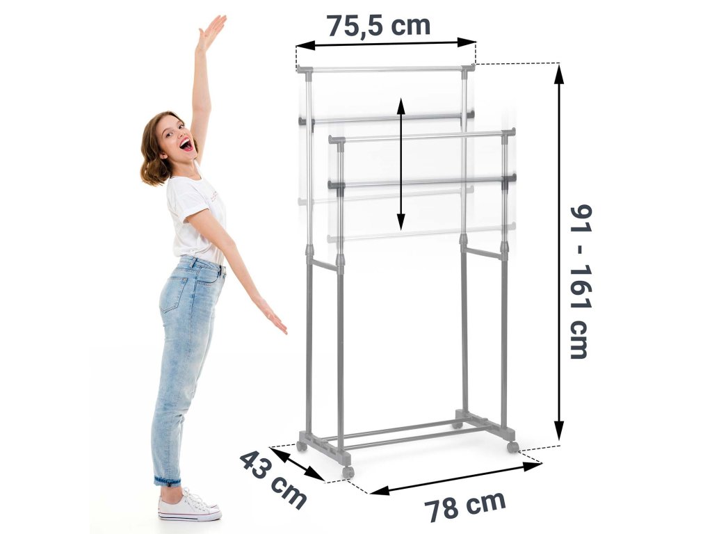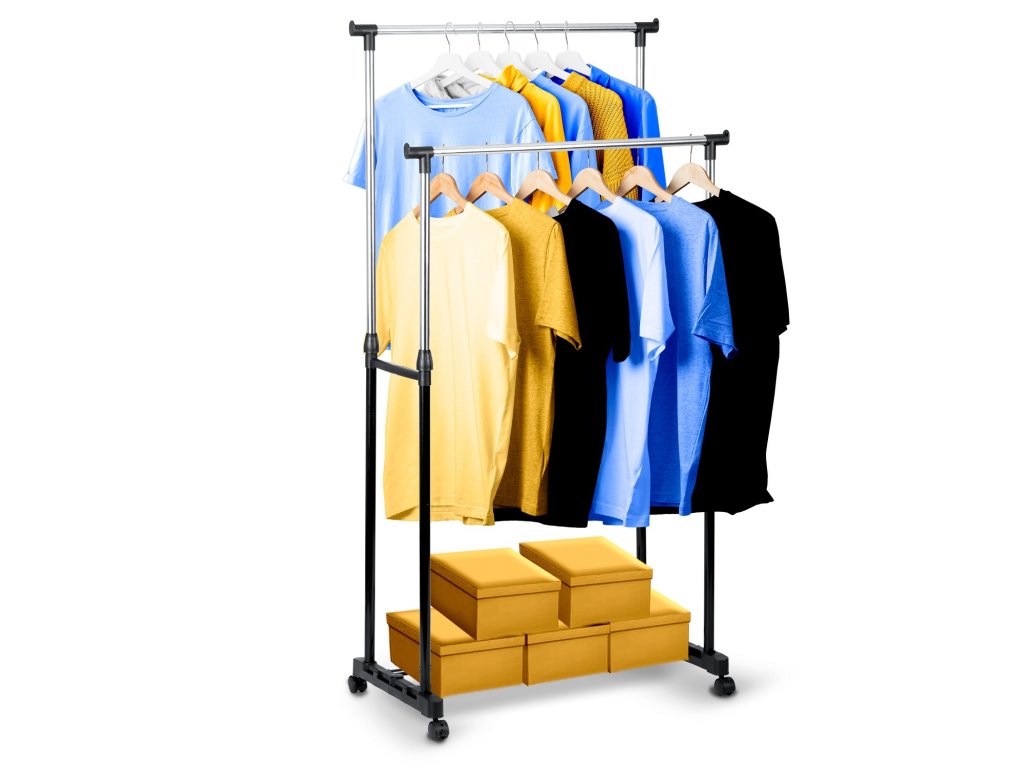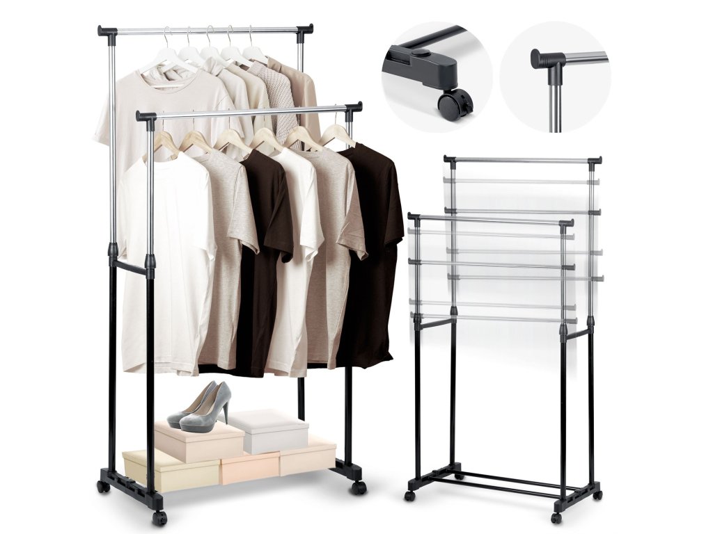 Cuierul prezentat are două suporturi , de exemplu, pentru cravate și altele. Practic pentru studenți, util în renovare în dressingul din casă, dar și pentru paltoanele oaspeților. Ideal pentru o familie cu copii datorită înălțimii ergonomice reglabilă.