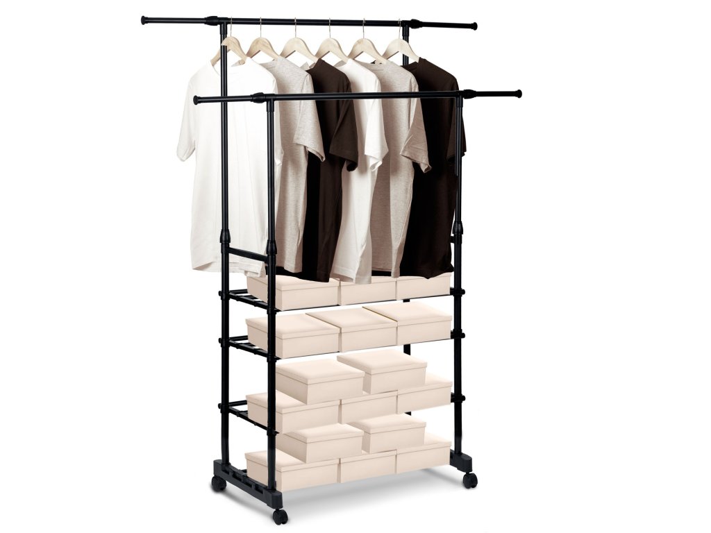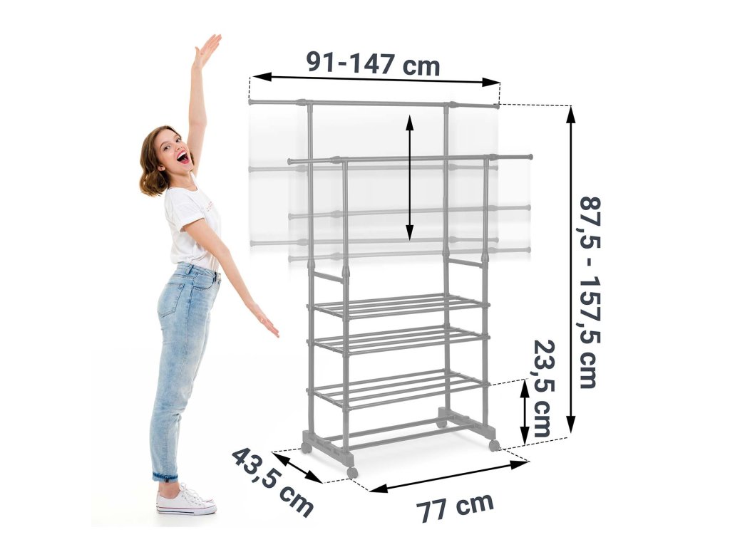 Cuierul prezentat are două suporturi , de exemplu pentru cravate și altele. Este practic pentru studenți, este de ajutor în garderoba de acasă în timpul renovării, dar și pentru paltoanele oaspeților. Ideal pentru familie cu copii datorită înălțimii ergonomice ajustabile.