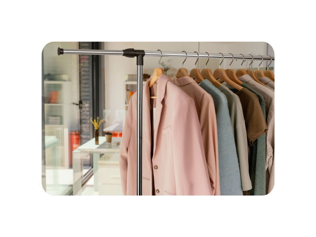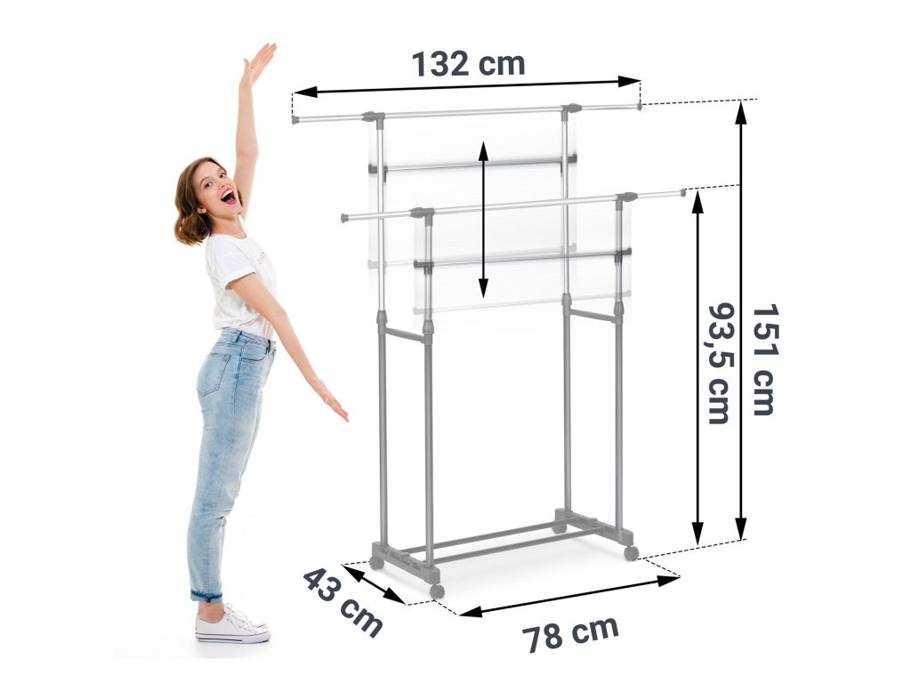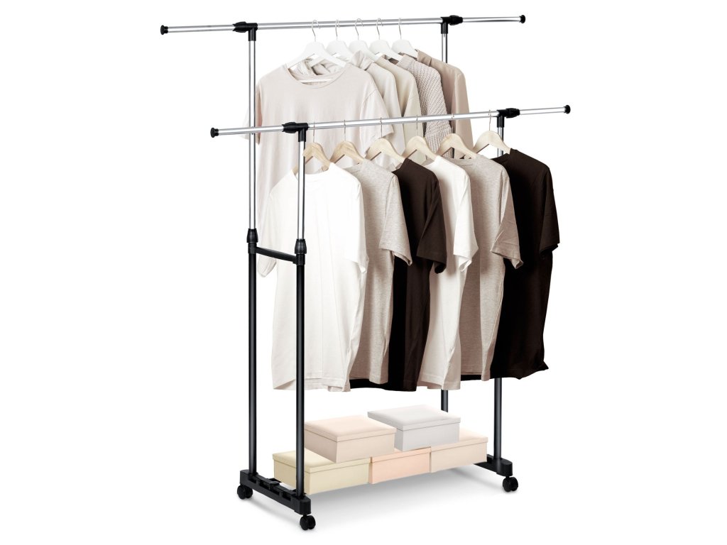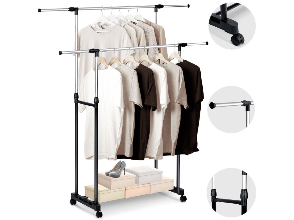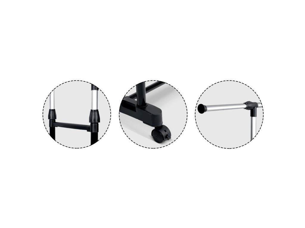 practică înălțime reglabilă max. 151 cm, sarcină maximă 10 kg, posibilitatea de reglare a înălțimii și lățimii cuierului, ușor (mai puțin de 3 kg), construcție stabilă, construcție metalică din oțel. Se potrivește frumos în spațiu.